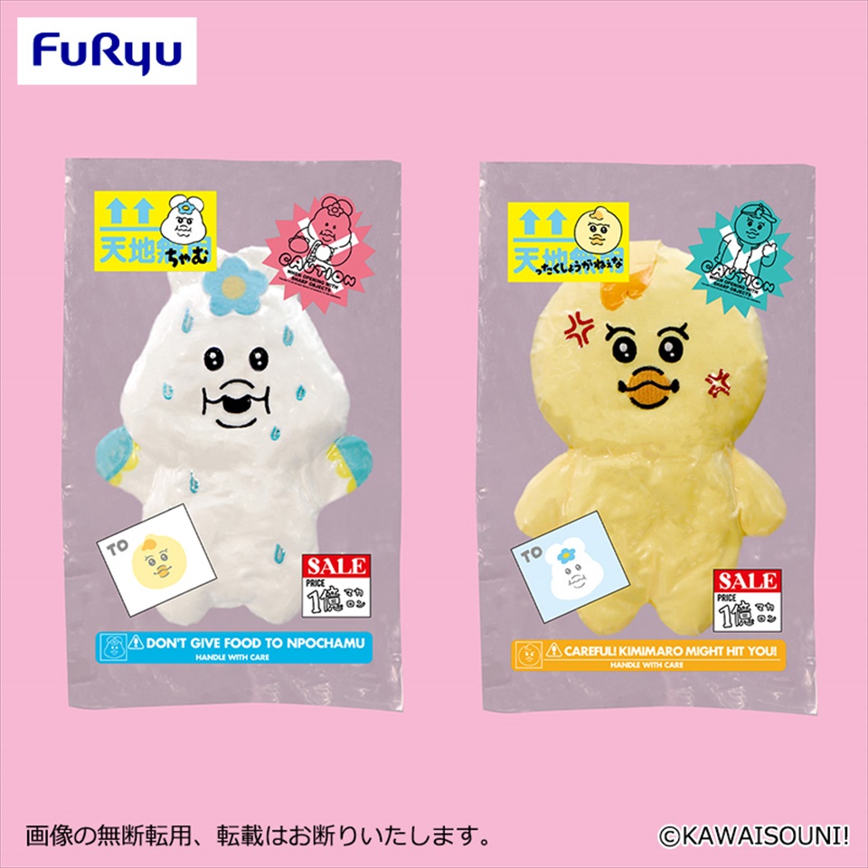 本次由FuRyu推出的夾娃娃景品,除了有Opanchu Usagi之外,也有Npochamu與好麻吉Kimimaro兩個角色一同登場。同樣都被擠在壓縮袋裡面,能感受到兩人截然不同的個性,一邊是緊張到出汗的Npochamu,另一邊則是既淡定又有點不爽的Kimimaro。這下好了,平常總是能為Npochamu挺身而出的Kimimaro,這次也被困在壓縮袋裡了,快到夾娃娃機台來解救他們吧!