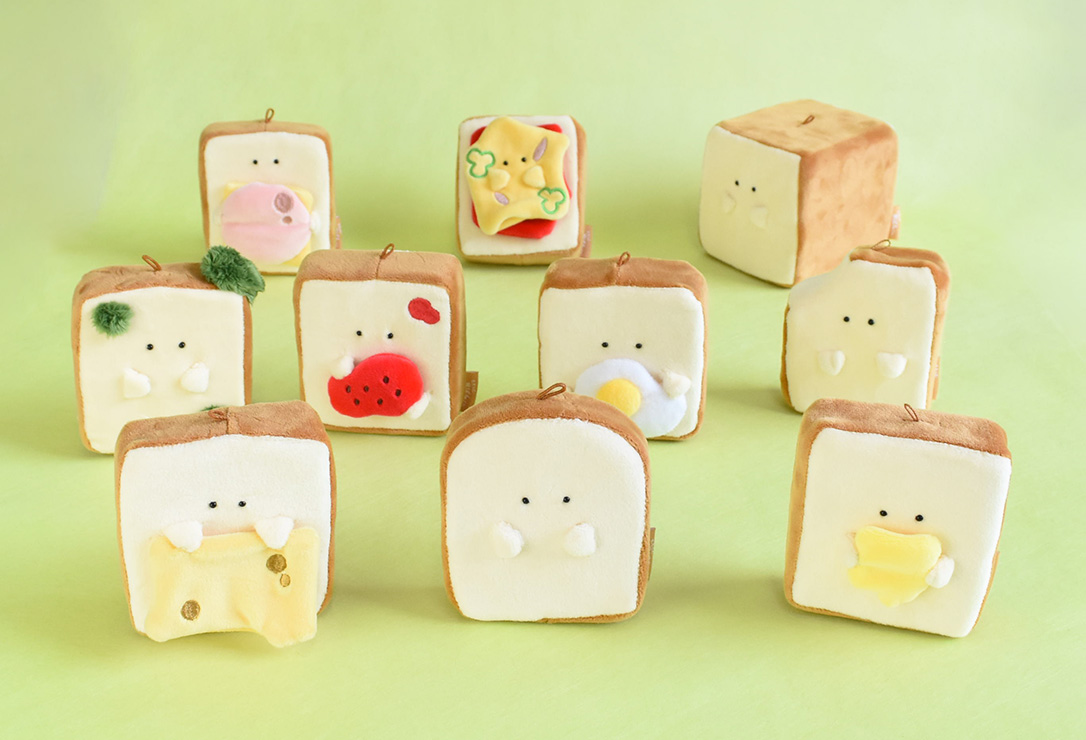 同樣由逸品社旗下推出的原創系列,還有以日本牛奶吐司為造型的「Mochitto Shokupan-san」(もちっと食ぱんさん),是一系列與吐司長得很相似的神秘生物,也有著各式各樣不同模樣(口味)的吐司夥伴。