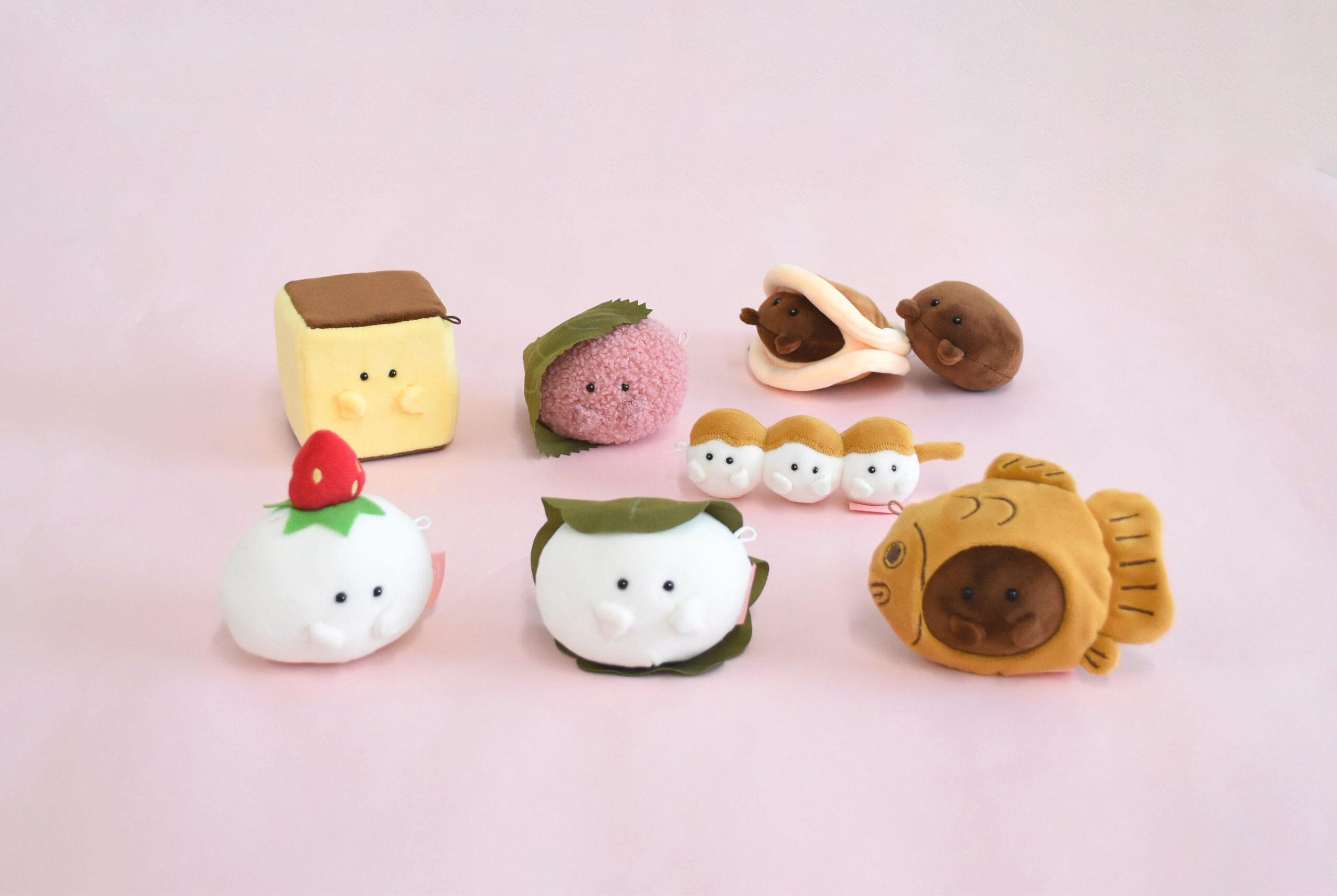 就連日式和菓子造型也有單獨出一系列,名為「Mochitto Wagashi-san」(もちっとわがしさん),能看到長得像柏餅、長崎蛋糕、櫻餅、醬油糰子等各種日式傳統點心的可愛生物。