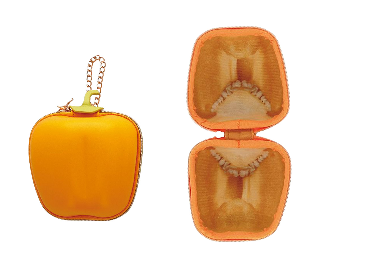 不只有蠶豆、高麗菜,還有甜椒的造型呢!一整顆完整的甜椒,打開內裡也是超驚喜,和高麗菜那款的內裡一樣,這款甜椒造型收納包的內裡也是走寫實擬真設計,內裡花紋完全仿造甜椒剖面的模樣,就連有種子的地方也都還原出來。