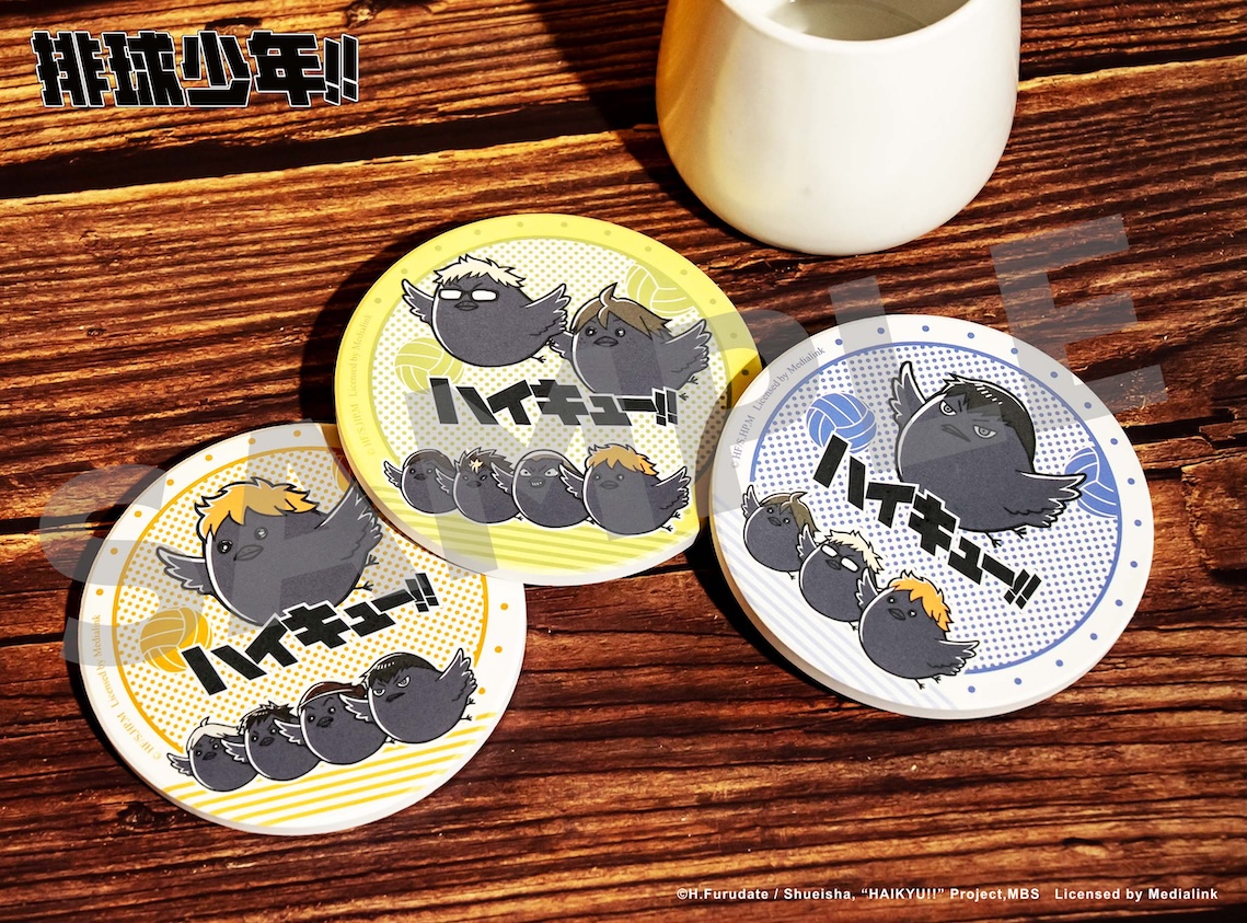 有烏野高中、青葉城西高中及音駒高中等七款學校校徽,配有Type-C和USB雙插快充孔,讓你一次充好充滿,還有三段式發光功能可以當成小夜燈,一物多用值得擁有!實用小物直接入手,三款「吸水杯墊」,有日向烏鴉、影山烏鴉及月島烏鴉等,讓最喜歡的角色幫你維持桌面乾淨!