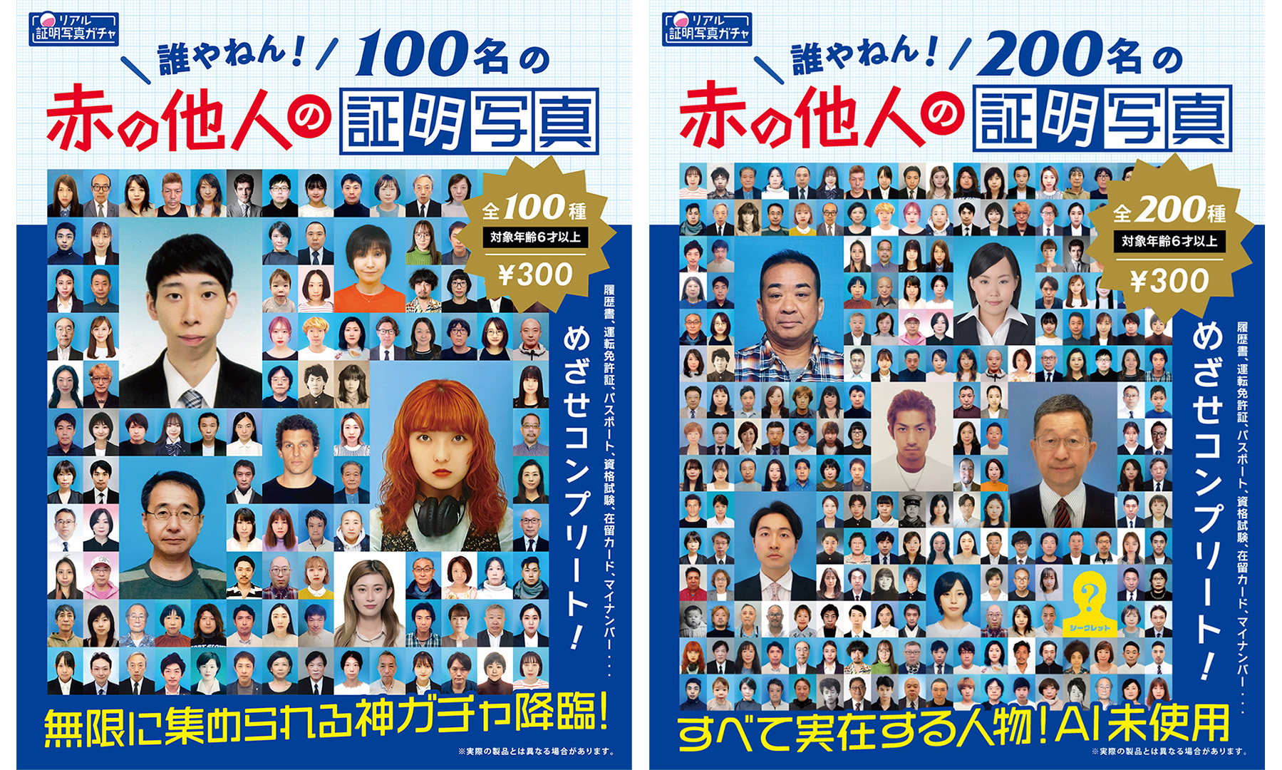 這些證件照扭蛋所出現的人們,其實都是實際存在的真人,並非用AI生成,是透過和網友、民眾募集照片而取得的,有些甚至還是企劃發想人向周遭親朋好友所要來的,想當然,這些照片全都有取得當事人的同意。