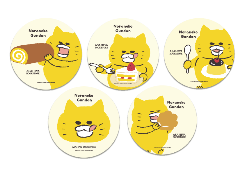 在活動期間購買野貓軍團的繪本或是周邊,金額達3,000日圓以上,還可以獲得滿額贈好禮「野貓軍團徽章」,本次滿額贈好禮的徽章圖案是以「野貓軍團品嚐甜點」為主題,可以看到野貓軍團吃著蛋糕捲、布丁、泡芙等甜點的可愛模樣。(徽章一共五款隨機贈送,數量有限送完為止。)