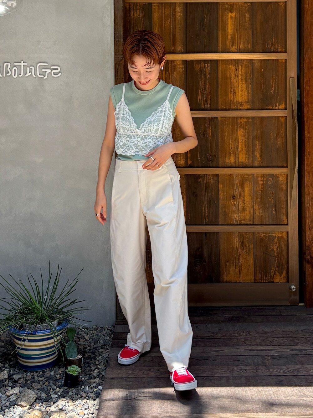 當想製造一股優雅知性氣息的話,不妨嘗試跟著日本女生,選搭細肩帶背心加法式袖上衣,落肩剪裁能修飾手臂顯瘦效果,而以蕾絲、馬甲造型的細肩帶背心,可以增添豐富的視覺層次,不論加上長褲或裙子都很合適。