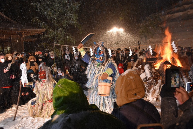 所謂生剝鬼的習俗,是指聚落的年輕人會在除夕夜打扮成「生剝鬼」,並一邊挨家挨戶巡視一邊喊著「愛哭的小孩在哪裡~?不聽話的小孩在哪裡~?」,藉此戒除怠惰的神明。這場祭典將在真山神社點燃柴燈,並在柴燈下展開強而有力的「生剝鬼」亂舞,其魄力與臨場感,讓觀眾們都能夠徹底感受到男鹿的傳統氛圍,並為此著迷不已。