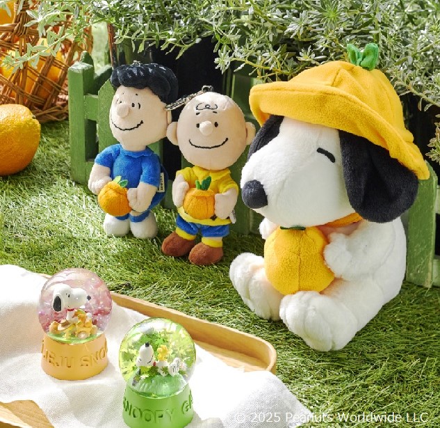 在濟州島深受喜愛的主題園區「SNOOPY GARDEN」中,具代表性的「橘子」與「濟州島石爺(トルハルバン)」元素和多款限定周邊結合,打造出了相當獨特的外觀造型。而這些周邊則包含了吊飾、雪花球、絨毛玩偶等,並且也都是首度引進日本的款式!