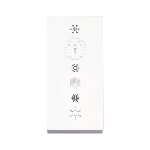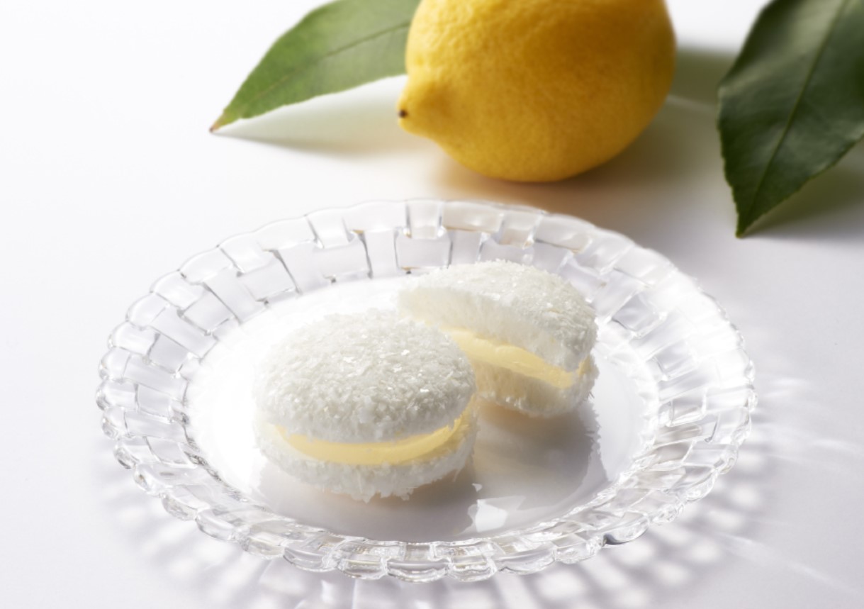 「淡雪花」是一款結合和洋技法的精緻點心,以法式棉花糖Guimauve夾入檸檬風味的琥珀羹製成。外觀宛如馬卡龍,表面點綴閃閃發亮的冰餅,既有洋菓子的華麗感,又帶著和菓子的雅致。其名取自「淡雪」與「雪花」,映襯出如雪般短暫而美麗的氣質。咬下一口,先是「喀嚓」的細脆聲,隨即是Q彈柔軟的口感,伴隨檸檬清香在口中散開。使用廣島產檸檬果汁製成的琥珀羹,夾在柔軟的法式棉花糖中,帶來酸甜交織、隱含薑香的多層次風味,讓人沉醉於豐富的口感與滋味之中。外盒以銀箔壓印,質感高貴,非常適合作為贈予長輩或尊長的伴手禮。