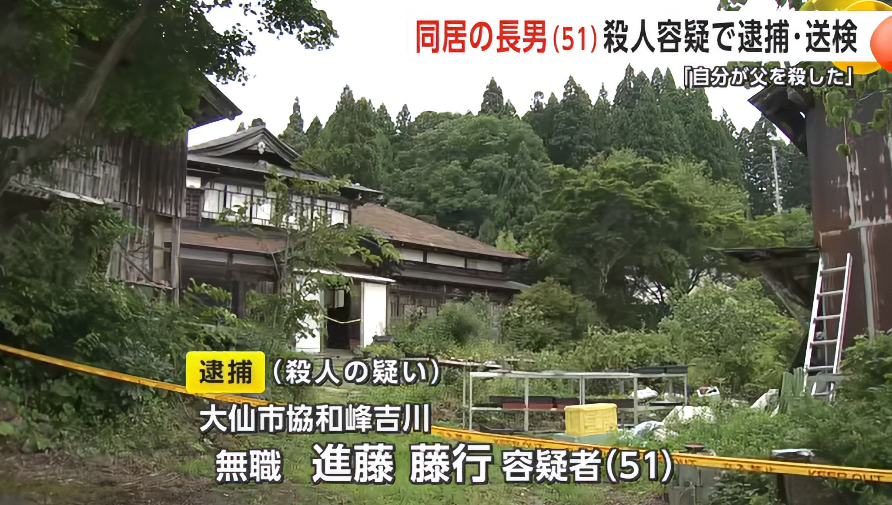 2025年8月18日,日本時間下午1點左右,秋田縣大仙市警方接獲一起報案。報案者為93歲老翁進藤藤義的80歲妻子,她語氣慌亂的表示丈夫倒臥在家中,身體大量出血。但當救援人員緊急趕到現場時,老翁卻已無生命跡象,當場宣告死亡。原本這起案件被誤認為是近期頻繁發生的熊害事件之一。然而隨著調查深入,案件的真相逐漸浮出水面。一切的證據都指向這並非動物襲擊,而是一樁駭人聽聞的殺人命案。