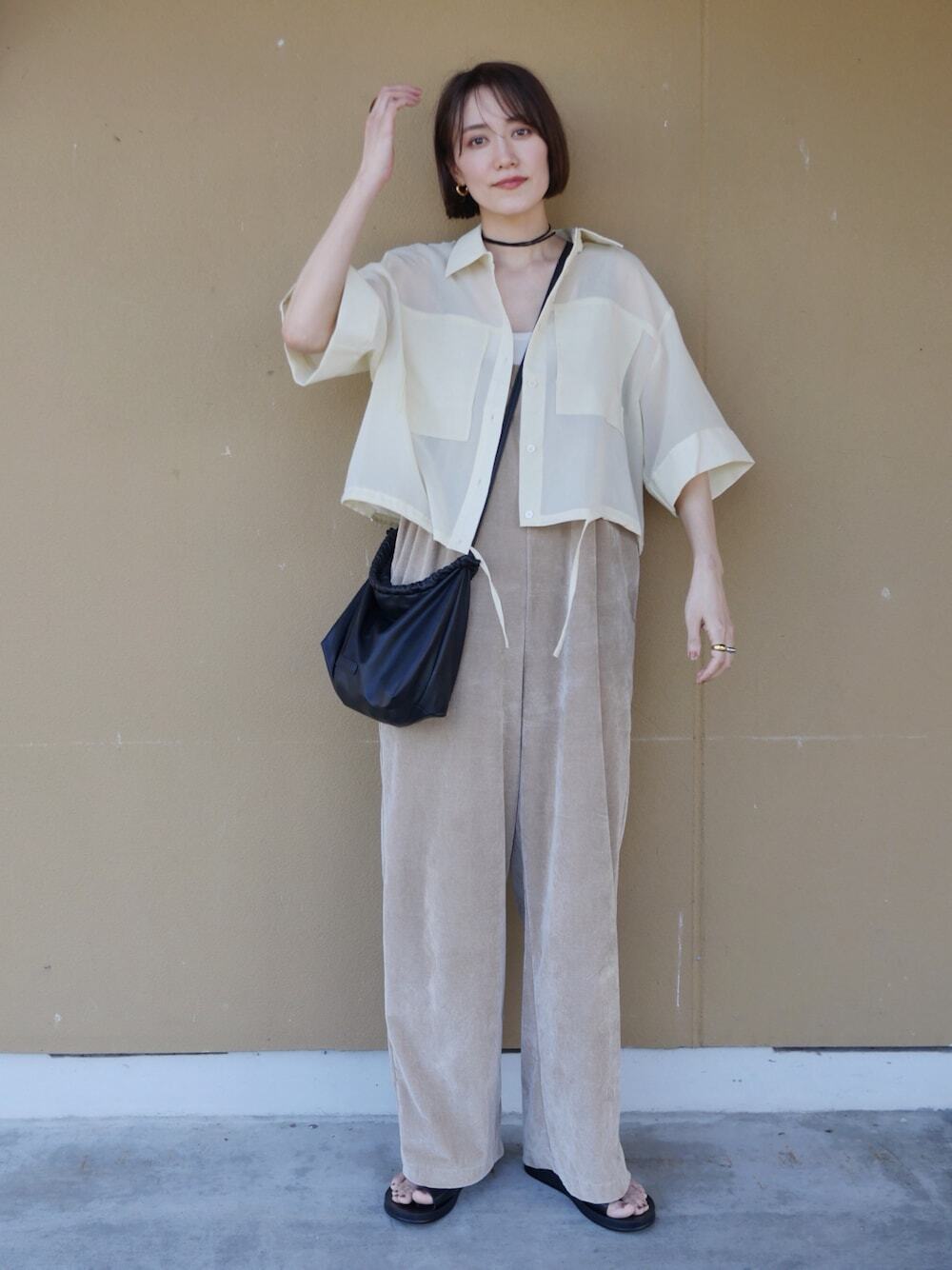 面對戶外炎熱的氣溫,外出除了注重服飾搭配之外,防曬功課也一定要做足,不妨嘗試選搭透膚襯衫和吊帶褲,巧妙製造輕透氛圍,整體看起來瞬間擁有降溫視覺,鞋子選用平底涼鞋,立即點亮質感兼具的日系時髦。