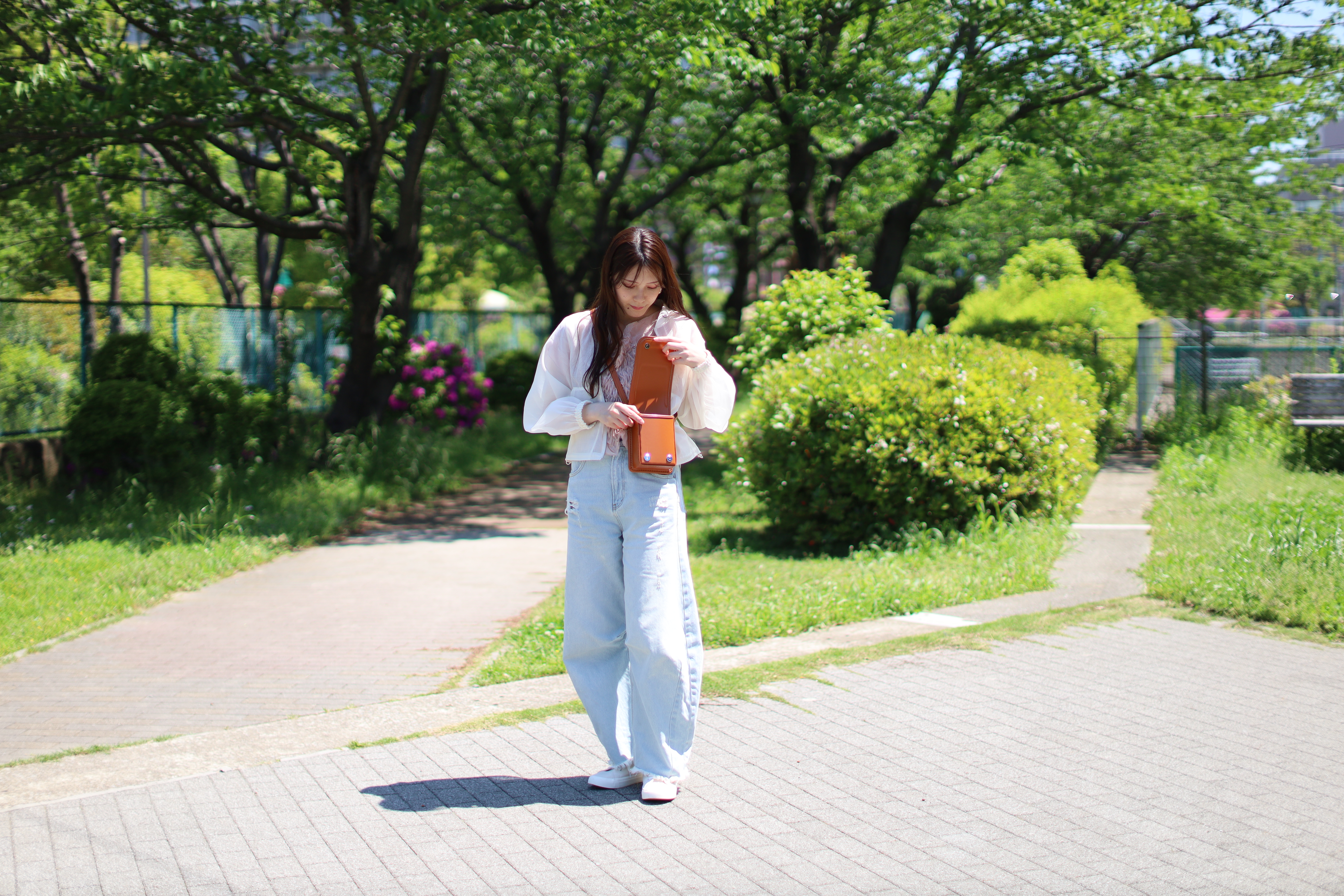 材質使用了同樣應用在書包上的日本製高品質人工皮革「Clarino」。它的特色是輕量,卻又具備防潑水性與耐久性。不僅在雨天也能安心使用,也非常適合日常生活。是一款能夠長久愛用的包款。