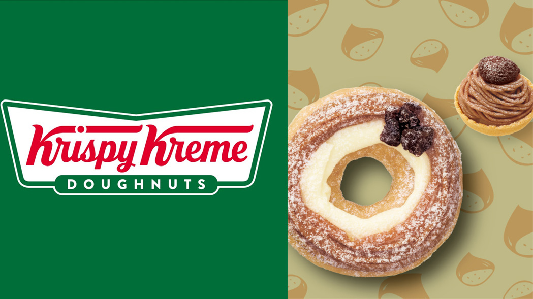 Krispy Kreme(クリスピー・クリーム・ドーナツ)的甜甜圈相當知名,相信甜食愛好者應該都對其不陌生。日本當地的Krispy Kreme也特別推出三種秋季限定口味的甜甜圈,其中一款正是蒙布朗口味,在甜甜圈上面擠上一整圈的栗子鮮奶油與香草鮮奶油,再放上蜜漬栗子粒點綴,每一口都吃得到蒙布朗風味。