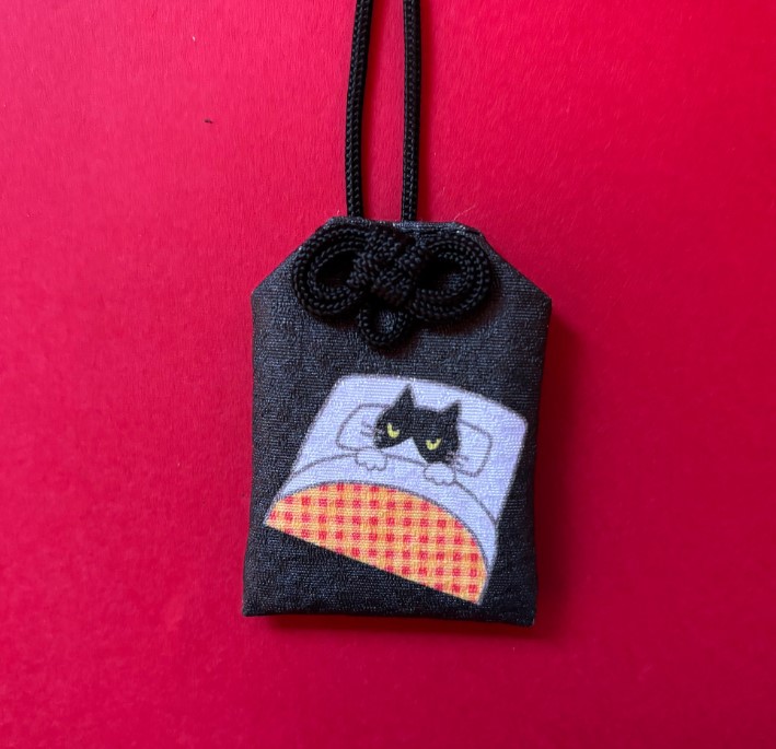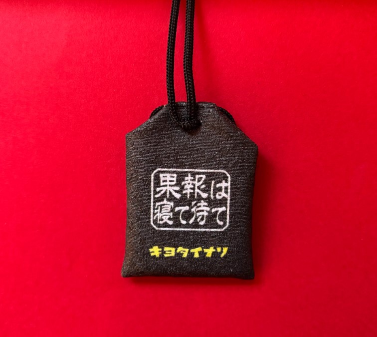 以八字花臉黑貓為圖案,搭配日本諺語「果報は寝て待て」(耐心等待,好運自來),寓意放鬆心情,好運自然降臨,是非常療癒的御守。