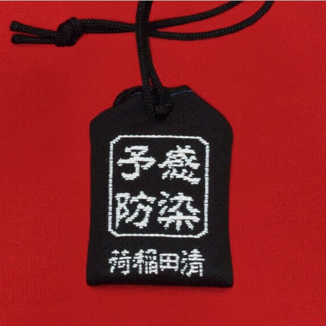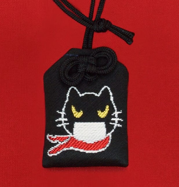 此款防疫祈願御守,是祈求遠離流感、COVID-19 等傳染病,守護健康。靈感來自神社第四代的黑貓,牠體型壯碩,脖子上總是圍著紅色圍巾,是守護事務所的「駐所守護員」,也因此成為守護健康的象徵。