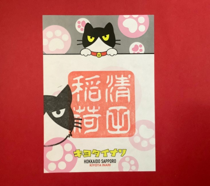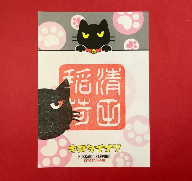御朱印會同時蓋上神社印與黑貓印(或是賓士貓)兩款印章,皆屬於限量款,售完即止。僅有印章,不附日期與記名,每張皆由工作人員親手蓋印,因此可能略有位置差異或輕微暈染,但這正是手作的特色。
