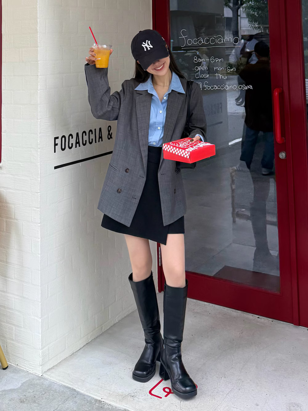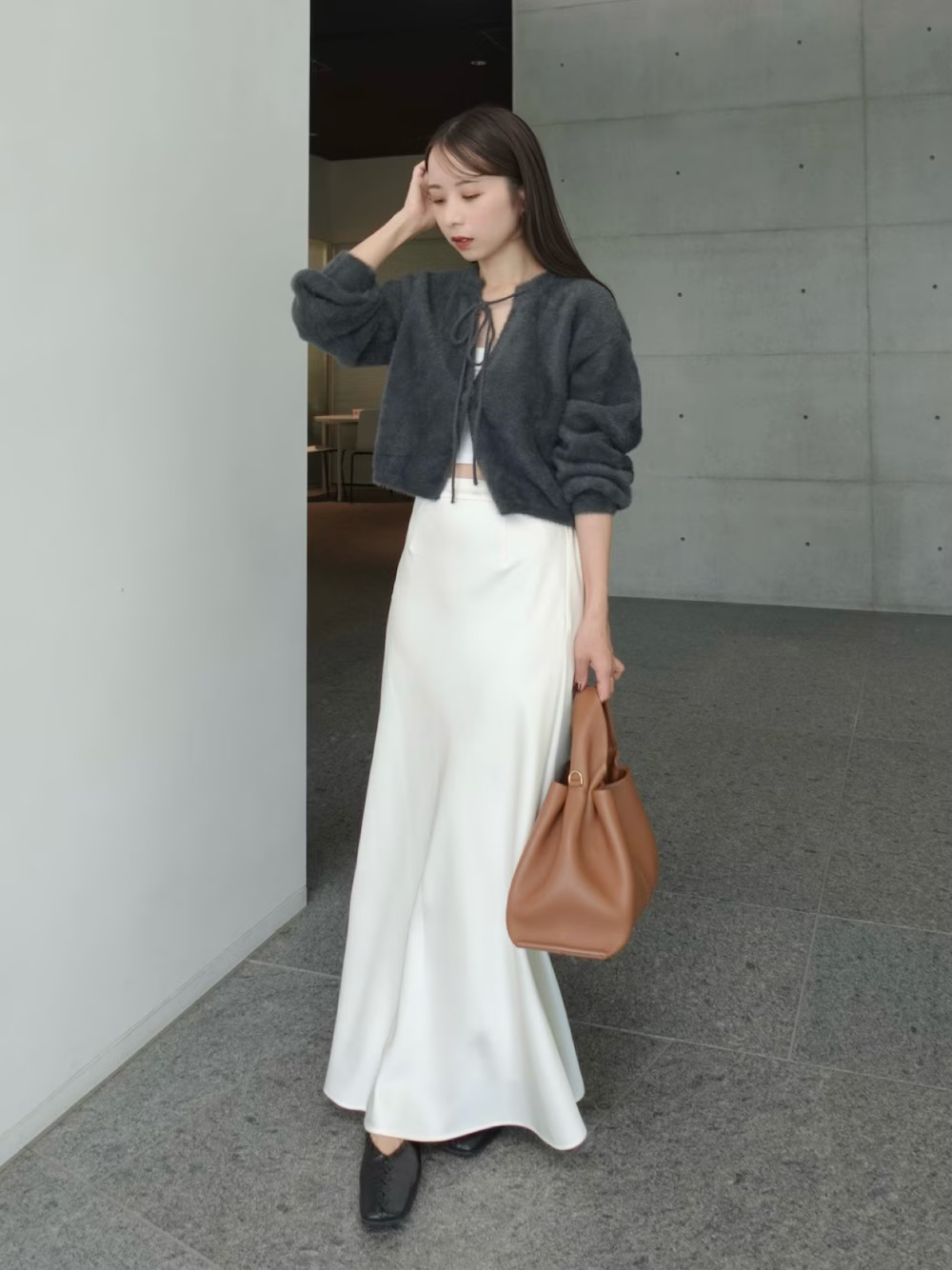 灰色一直以來是秋冬常見的色系,好搭配且不燒腦的色調,很適合在懶得想搭配時使用,選搭白襯衫、灰百摺長裙,瞬間連結優雅兼具的通勤 Look ,或者以灰色開襟衫和白色洋裝混合,便能展現輕甜女孩感的約會造型。