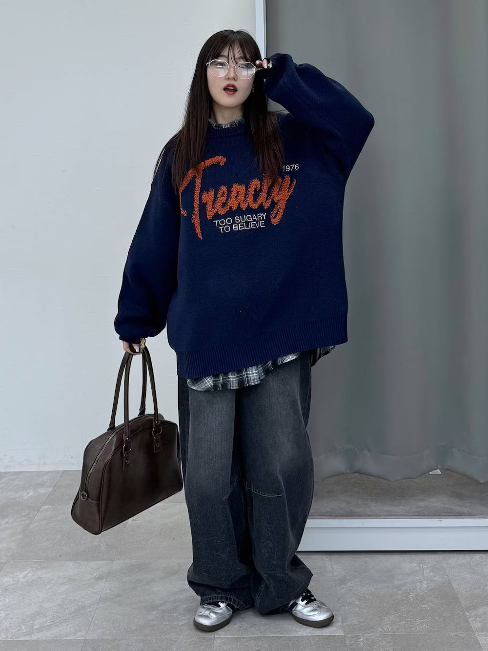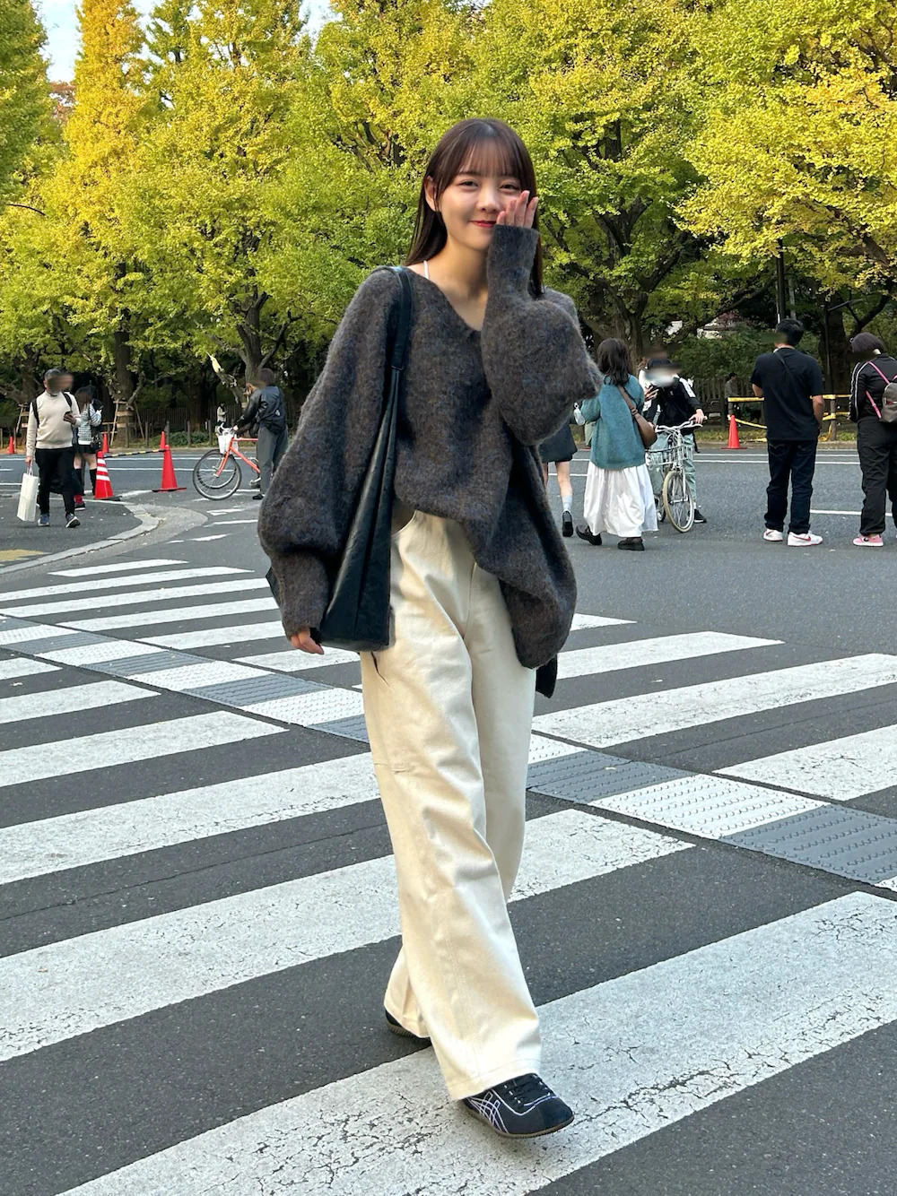 東北地方穿搭範例01Oversize毛衣 + 牛仔褲