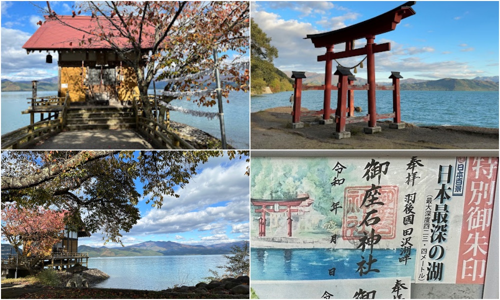 無論是哪個季節,田澤湖都有讓人不會失望的美麗。特別是冬季,皚皚白雪覆蓋大地,純淨的雪景倒映在瑠璃色的湖面上,美到讓人忍不住屏息。湖畔座落著與辰子姬傳說息息相關的「御座石神社」,冬天朱紅色鳥居、白雪、湖景同框的美景,讓許多攝影愛好者都特意前來收入鏡頭。