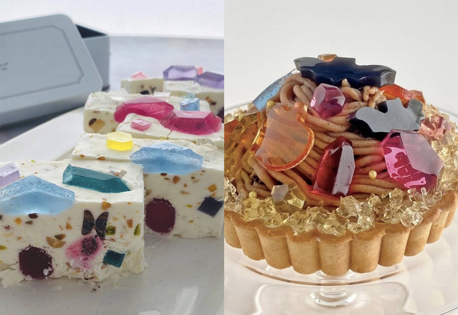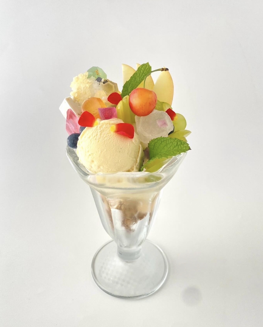 來到位於福岡的店面,在這裡你能夠品嘗到各種結合寶石琥珀糖的精緻甜點,有上頭擺滿寶石琥珀糖的卡薩塔蛋糕(Cassata),以及根據每個月份的誕生石而去製作的誕生石限定聖代,還有以寶石琥珀糖點綴的最中餅以及冰淇淋等,每一道餐點都媲美藝術品,讓人醉心於這些以閃亮琥珀糖妝點而成的美麗甜點。