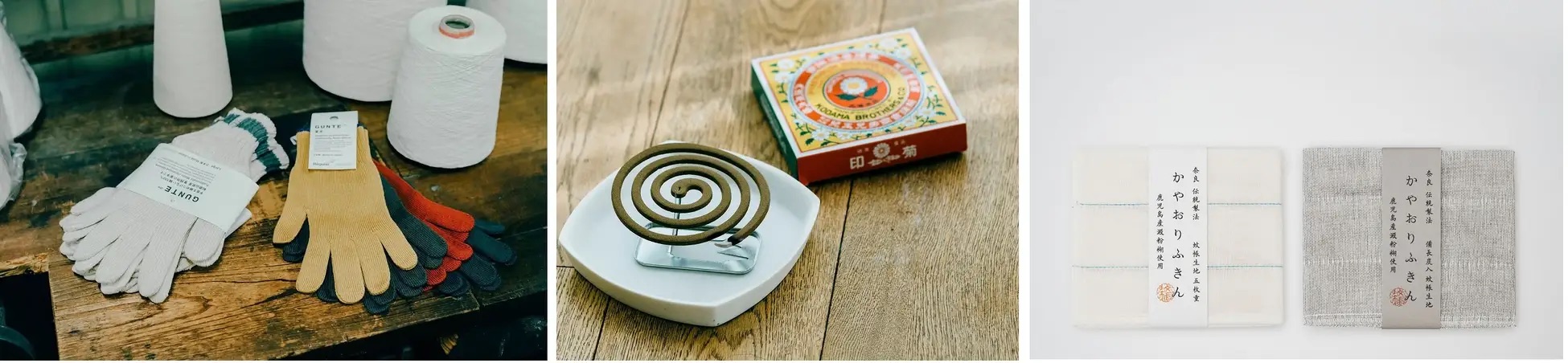 圖左:和歌山百年老字號製作的高品質純棉軍手。