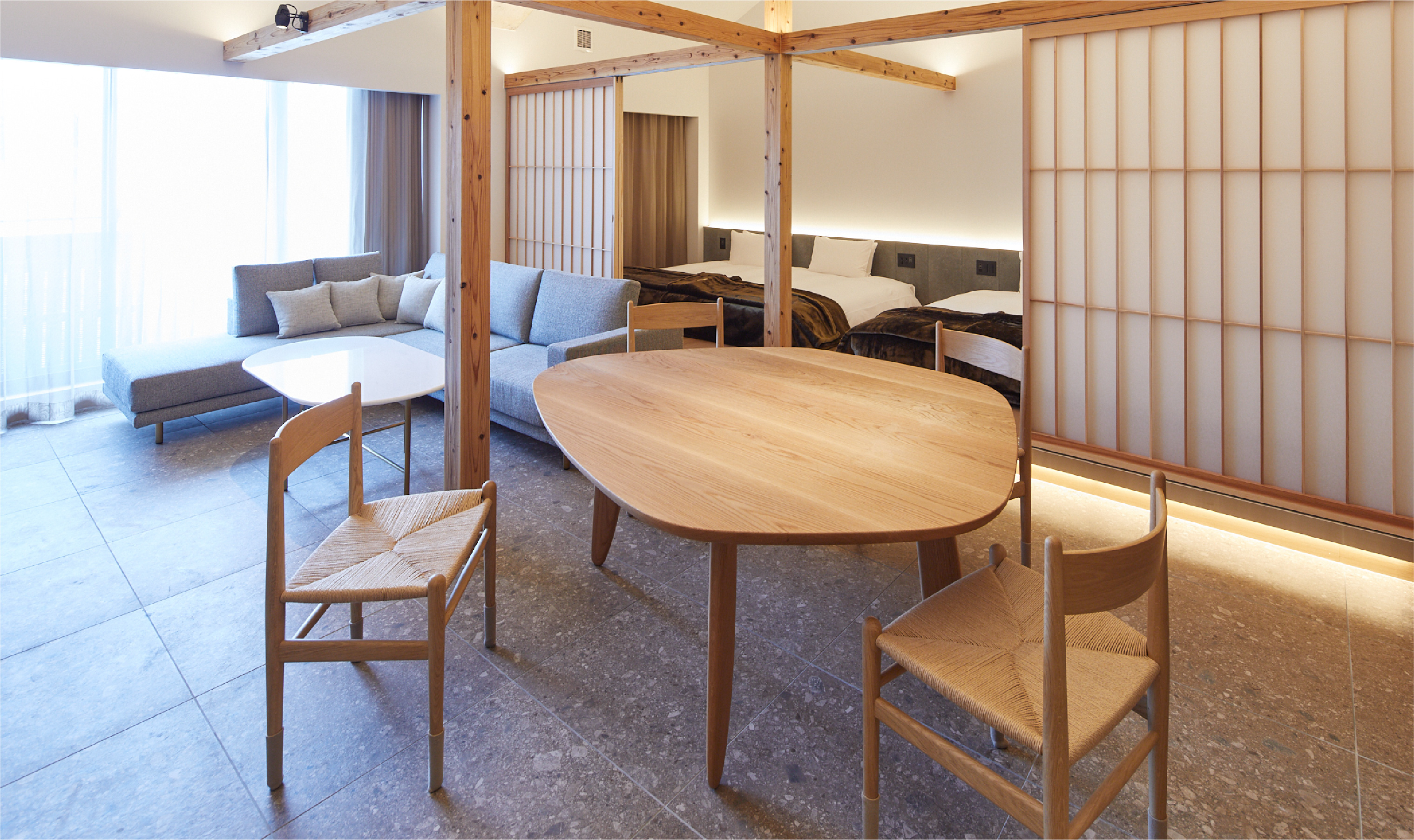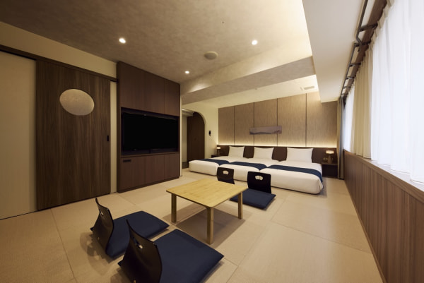 客房呈現滿滿的日本與京都風格,和室設計與柔和的照明,讓人宛如住在傳統京都建築「京町家」中。在飯店內也能體驗京都文化、免費品嚐當地酒屋生產的日本酒,房內提供茶具,讓住客享受京都知名的抹茶文化。