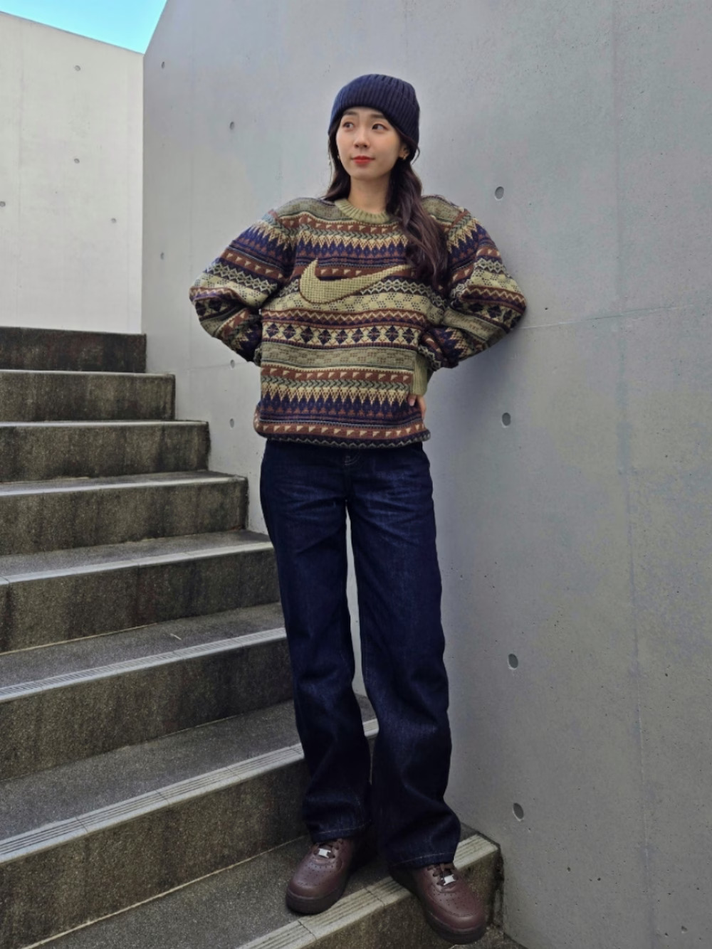 關西地方穿搭範例01:毛衣 + 直筒褲