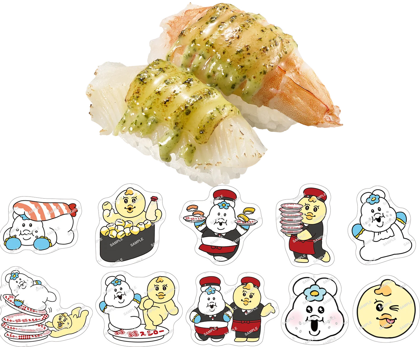 從10月22日才登場的聯名指定餐點則是這道羅勒起司炙燒蝦&花枝握壽司,隨餐附贈一款優格精靈造型插卡,一共有10款隨機贈送。喜歡優格精靈的粉絲可得點這道壽司來嚐嚐囉!