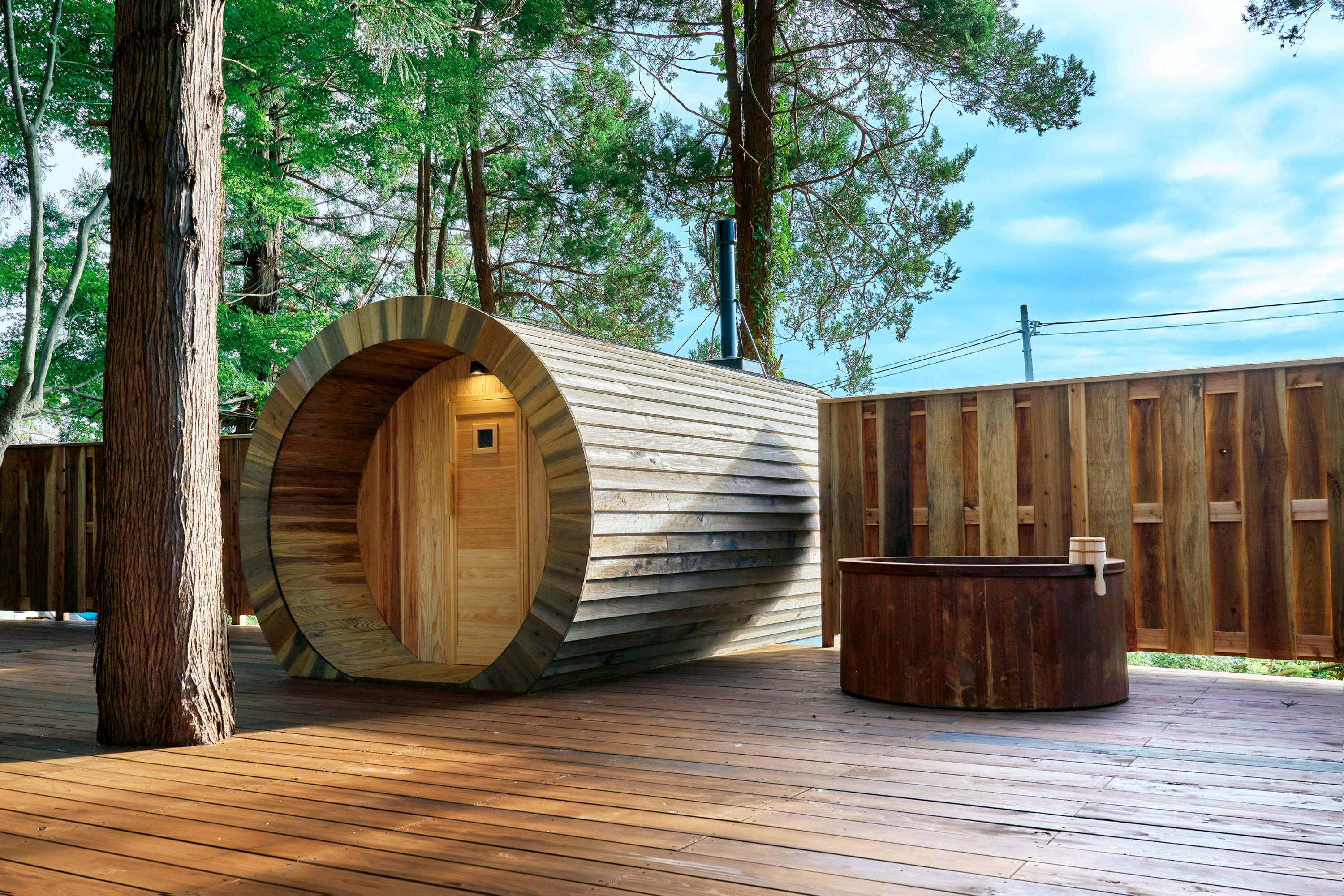 桑拿區以木製平台鋪設,可赤腳自在行走,觸感溫潤舒適。這座桑拿最高可達110度,使用者可自行進行「セルフロウリュ」(自行將水潑灑在熱石上產生蒸氣),以此增加熱氣與濕度,同時體驗強烈的熱能與舒暢的清涼感。