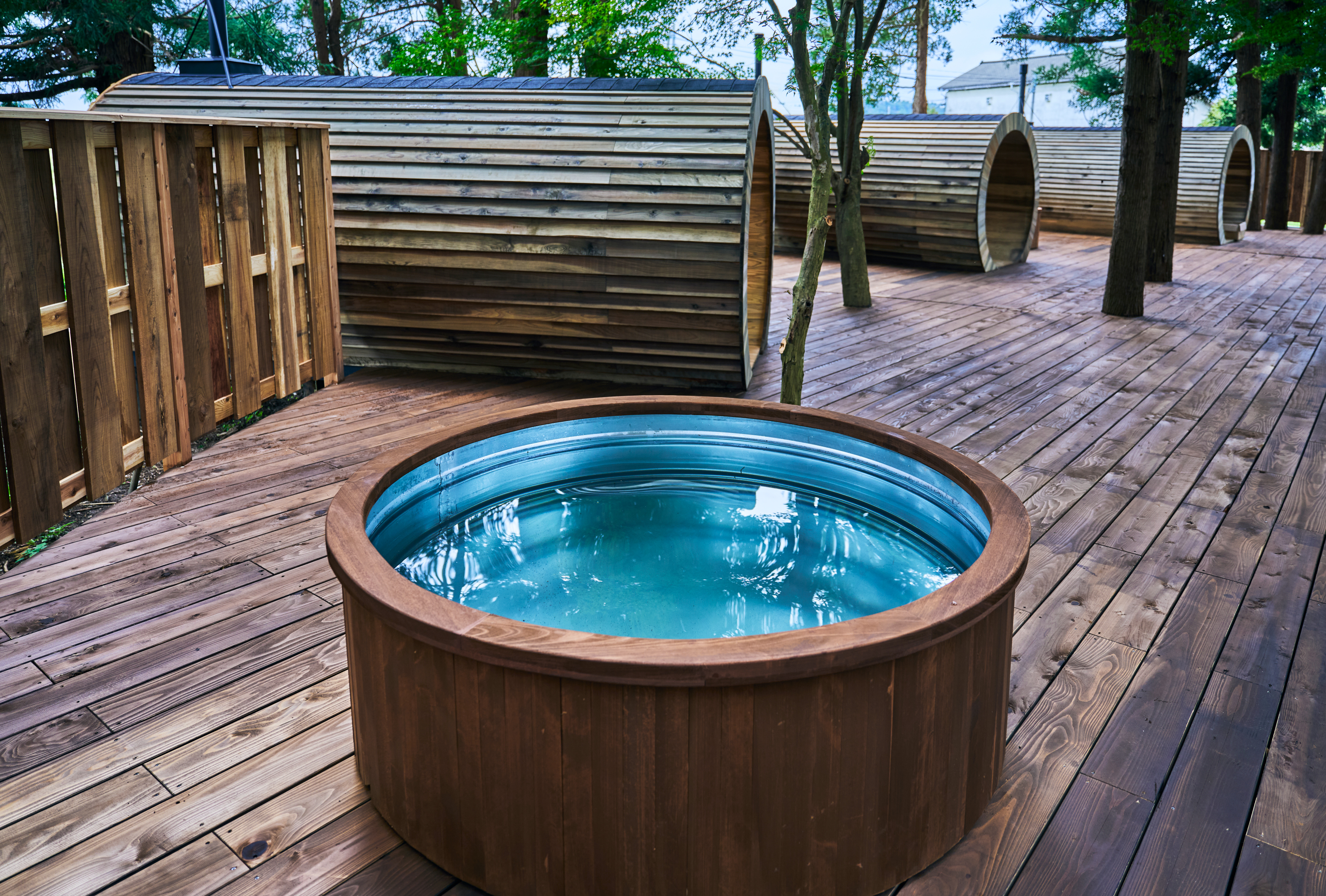 桑拿結束後,可泡入全年維持在約15℃的冷水浴池。這裡的水是當地獨特的地下軟水,硬度僅17,能讓肌膚與髮絲保持柔潤,同時緊緻身體、恢復活力。
