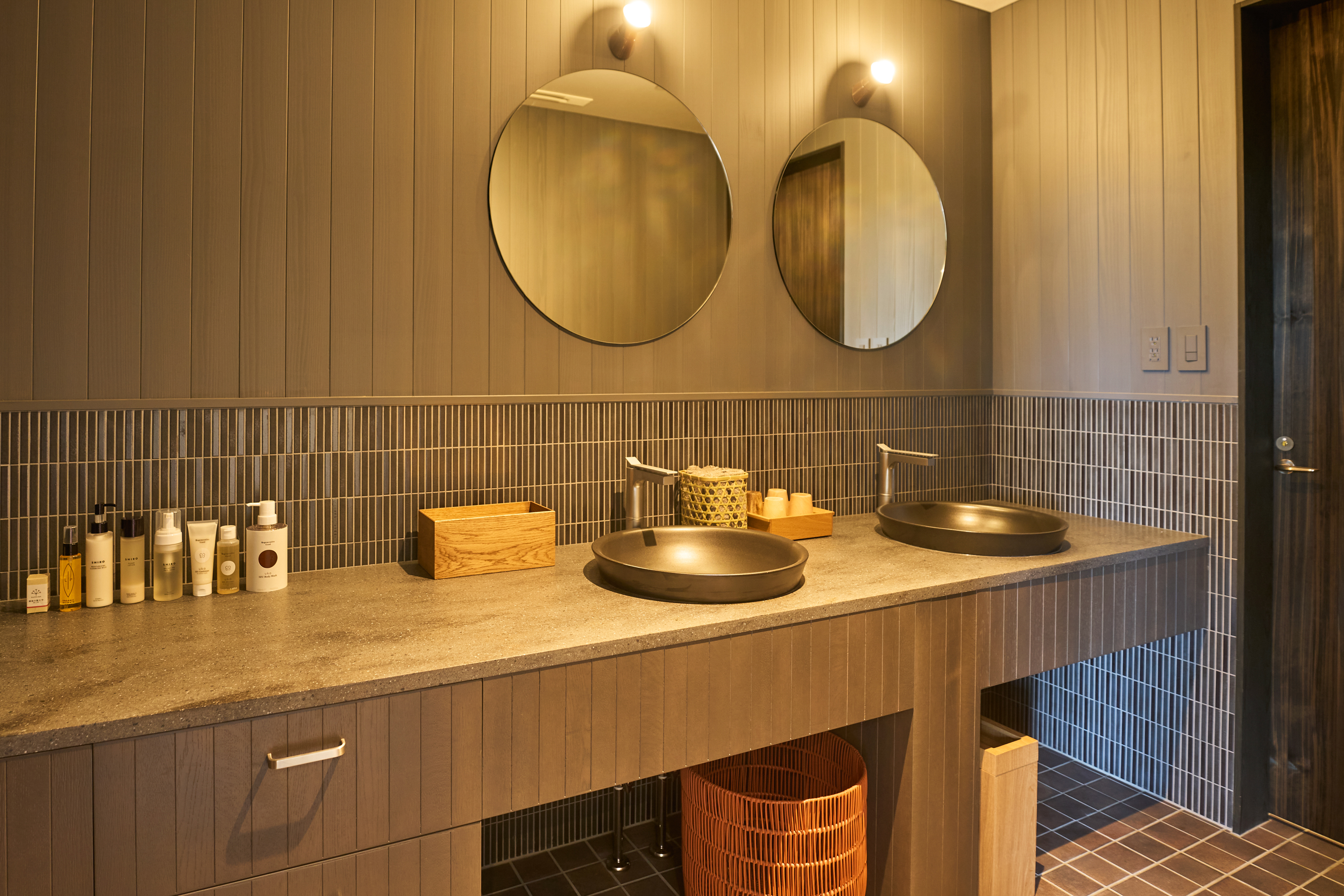 屋頂使用日本傳統陶瓦「安田瓦」,經1300度高溫燒製而成,堅固耐雪。木工部分使用新發田產杉木,由當地職人以自然工法完成。每一項素材都被細心活用,甚至走廊鋪設的瓦片都是手工劈製的。