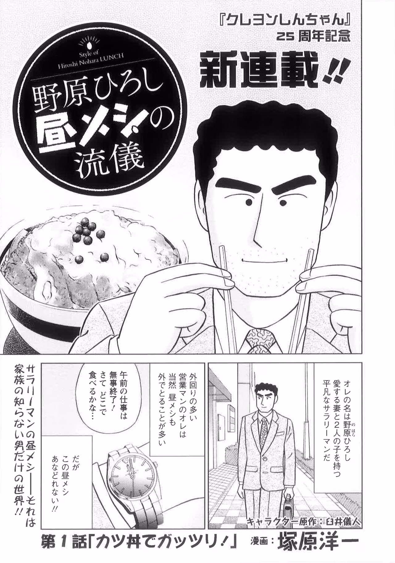 《野原廣志 午餐的流派》講述野原廣志作為平凡的上班族,在忙碌且有限的午休時間中,對選擇午餐的小堅持與發生的趣事。劇情中對上班族用餐情形的描寫與廣志的心聲,獲得了社會人的廣大共鳴。紙本與電子漫畫銷量突破80萬部,是近期最受矚目的美食系漫畫。但為什麼這次動畫化後更紅出了新高度?