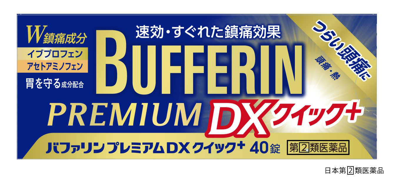 目前「BUFFERIN PREMIUM DX QUICK⁺」是僅在日本販售的止痛藥,並被歸類為日本的「指定第2類醫藥品」。使用時請務必確認「使用注意事項」,若有過敏體質,建議先諮詢藥劑師或具備販售資格的人員。