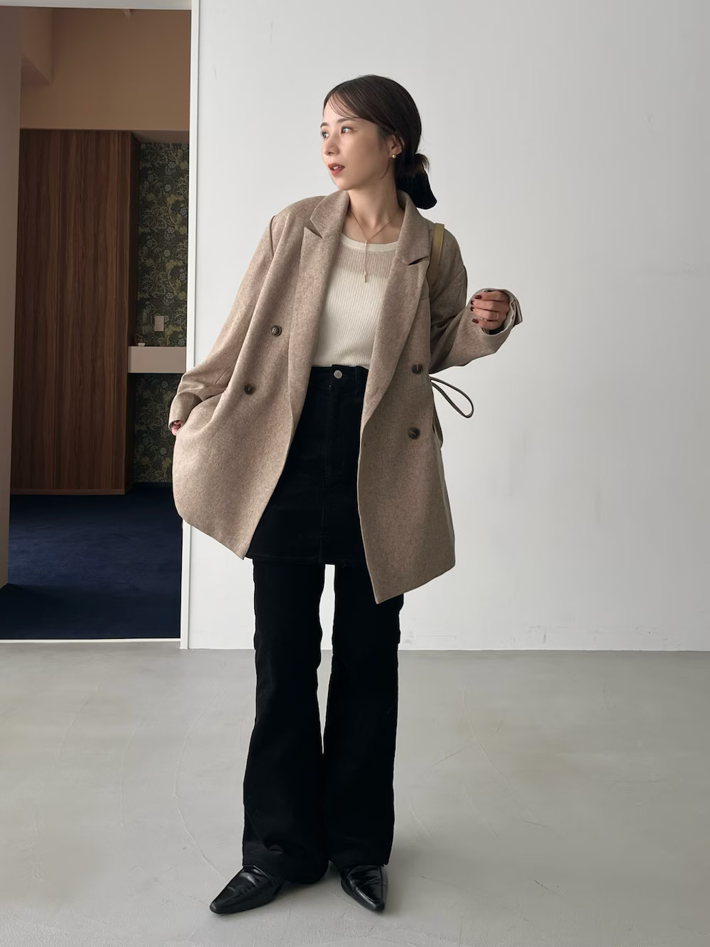 LOOK 03.長版襯衫X燈芯絨褲
