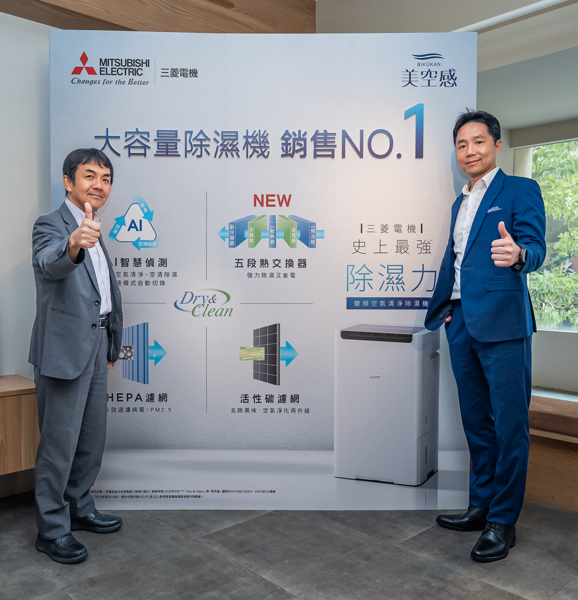 三菱電機除濕機有素有「吸水怪獸」的稱號,在台灣大容量除濕機市場更是穩居銷售第一(註2),本次針對台灣市場需求推出了全系列都是變頻的升級版,部分機型除了具備AI智慧偵測、HEPA及活性碳濾網外,為了符合2026年新一級能效、提高除濕力,更是將原先的三段熱交換器提升到了五段熱交換器,不僅是目前台灣市場唯一的日本原裝機種,更是結合除濕、空氣清淨與除臭三大功能,一機三體省空間,維持室內乾爽好空氣。