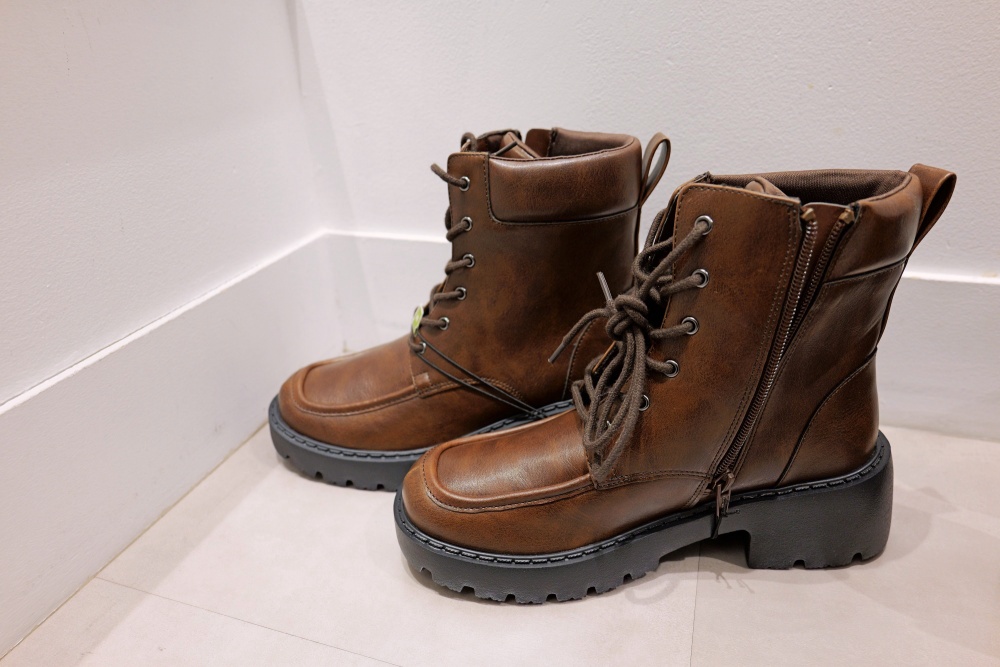 穿搭時,這款厚底靴幾乎是褲裝、裙裝皆百搭 的神級存在!搭配「側百褶褲裙」能平衡整體比例,展現俐落又不失可愛的學院氣息。搭配修身的直筒褲或寬版西裝褲時,能將視覺重點收攏在腳踝,讓長褲造型更顯俐落不拖沓,強化中性精緻的都會風。與「Cozy Melton 立領大衣」或「仿皮哈靈頓外套」組合,則能營造出街頭感更強的風格。
