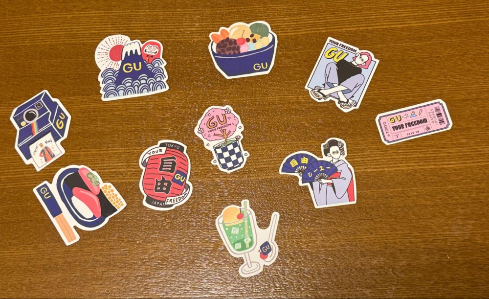 免稅結帳一次即可獲得一張超級可愛的 GU 貼紙,僅限部分店舖有且數量有限,請大膽地向店員詢問吧!