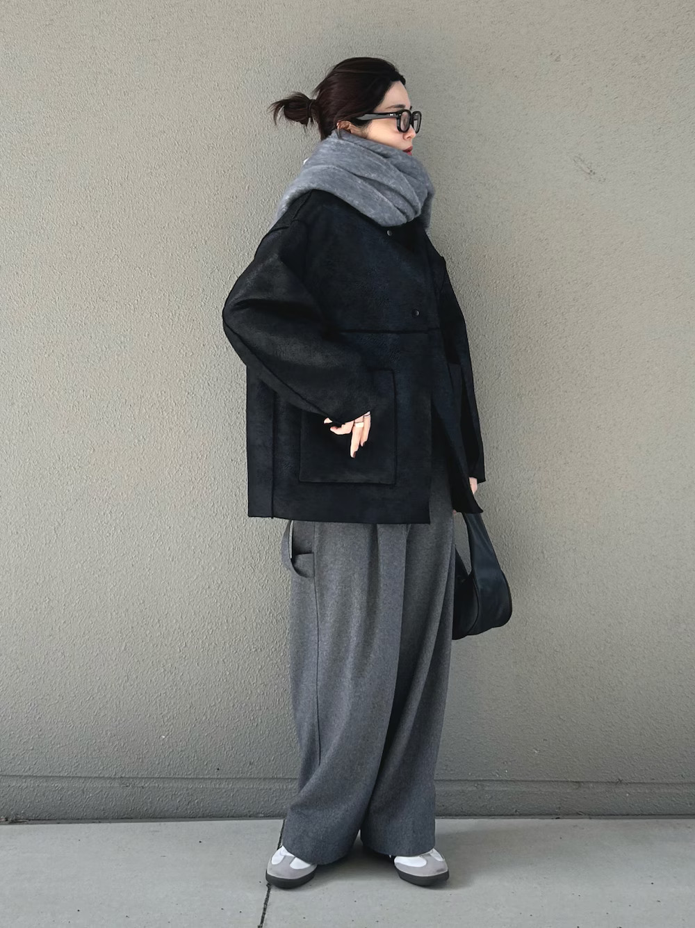 東北地方穿搭範例02:無領外套 + 休閒西裝褲