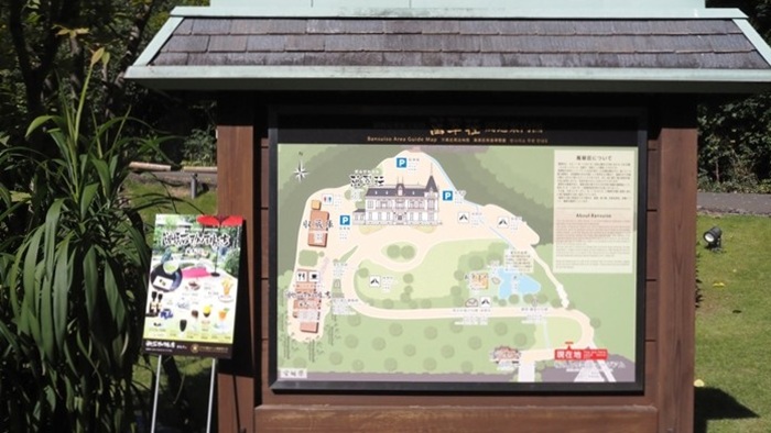 「萬翠莊」,現今一樓則作為展覽空間,正中央的樓梯彩繪玻璃為 木內真太郎的作品,二樓為家具與空間展示間,還有昭和天皇曾經造訪與用餐的空間,每間房間的暖爐、吊燈與彩繪玻璃都非常值得一看!