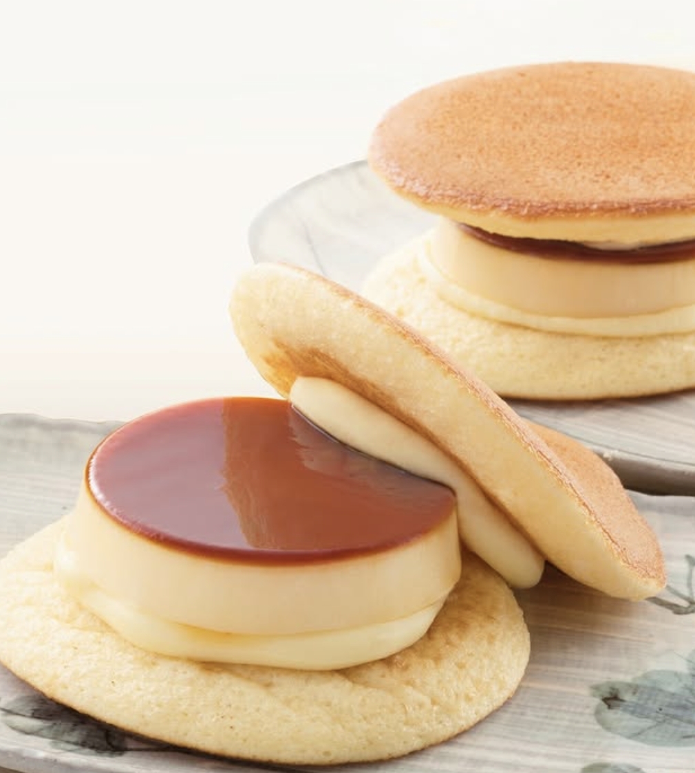 不同於一般銅鑼燒是紅豆夾心,這款銅鑼燒包的夾心則是一整顆的布丁,這款甜點正是由「お菓子の菊家」所推出的布丁銅鑼燒,在推出後便獲得熱烈好評。鬆軟的銅鑼燒餅皮,配上卡士達醬,以及帶點微苦風味的焦糖布丁,咬下去每一口都是令人感到幸福的滋味。