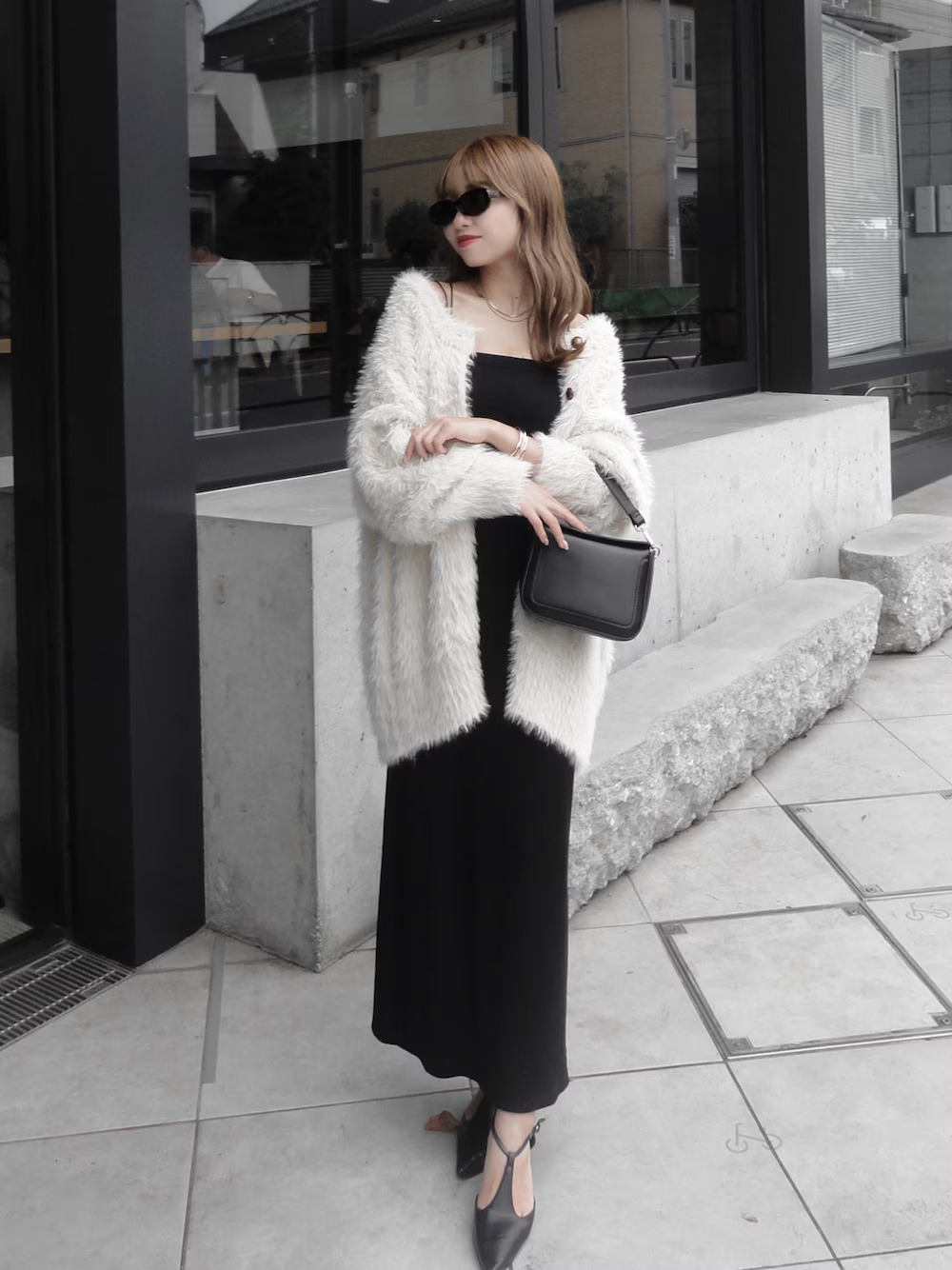 LOOK 03.中長版開襟衫+黑色長裙