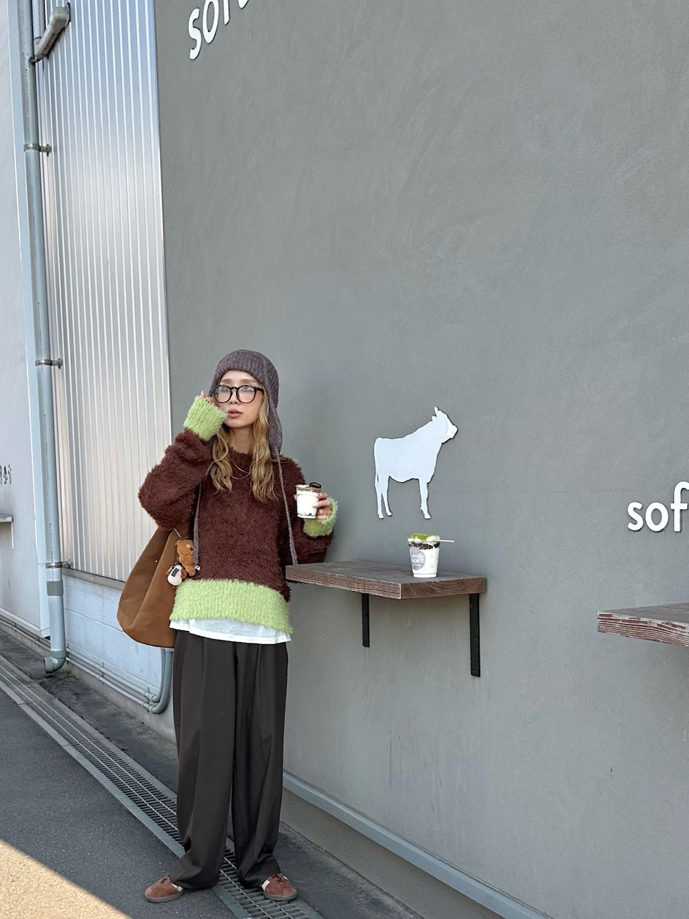 當寒流來襲,這時連耳朵都需要保暖,不妨嘗試以蓋耳式毛帽混合,使耳朵也不怕低溫又能擁有暖度,再選穿寬鬆感、亮色系毛衣加牛仔褲,為冬天穿搭傳達滿分的日系氣息。