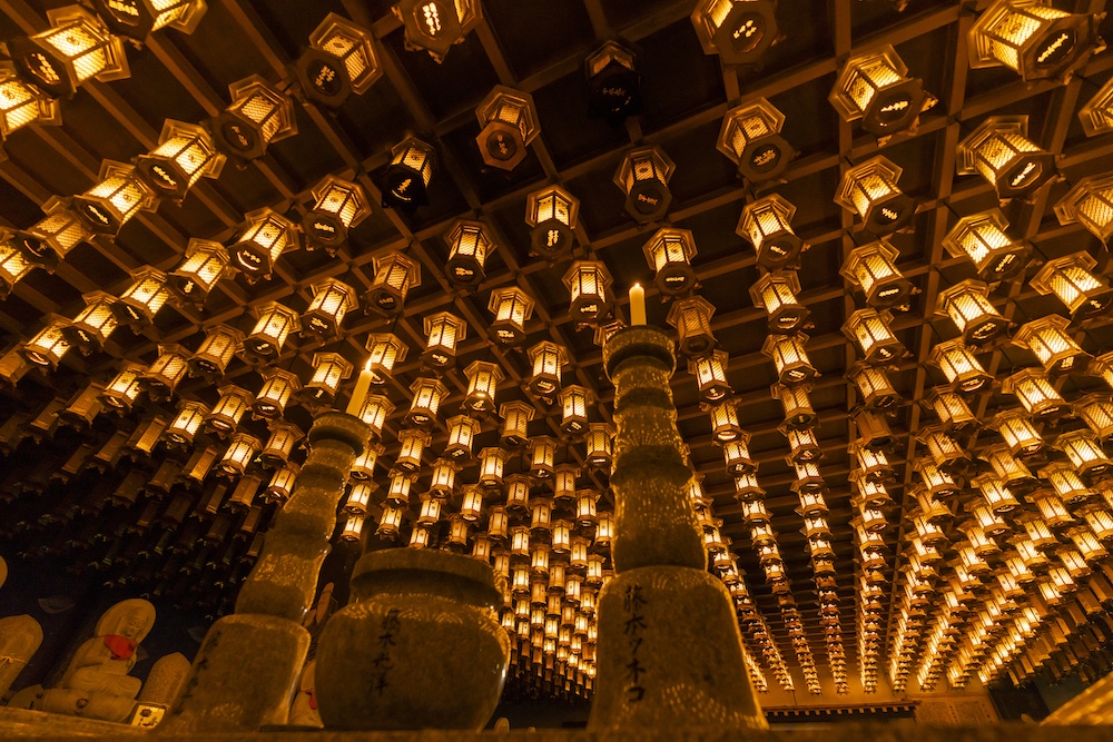 具有1200年以上歷史的大聖院屬於真言宗御室派,空海上人自大唐返日後曾在宮島的彌山修行後於806年創建。位於彌山山腰的大聖院距離嚴島神社不遠,是眺望大鳥居及海景的絕佳地點。穿越大聖院寺門,踏上石階,包覆寂靜山林的清冽空氣迎面而來,讓訪客的心自然而然沉靜、放鬆。院內有五百羅漢庭園和遍照窟等各種景點,可以體驗撞鐘、大般若經筒轉經,並欣賞不動明王像等。在清靜莊嚴的寺院內漫步,觀察表情各異其趣的戴帽地藏,許下對新年的願望,期待新的2026年,一切都能變得更加豐盈美好。近年推出設計精緻的紙雕造型御朱印也非常值得收藏!新年假期若至宮島旅遊,推薦您務必來此一訪。