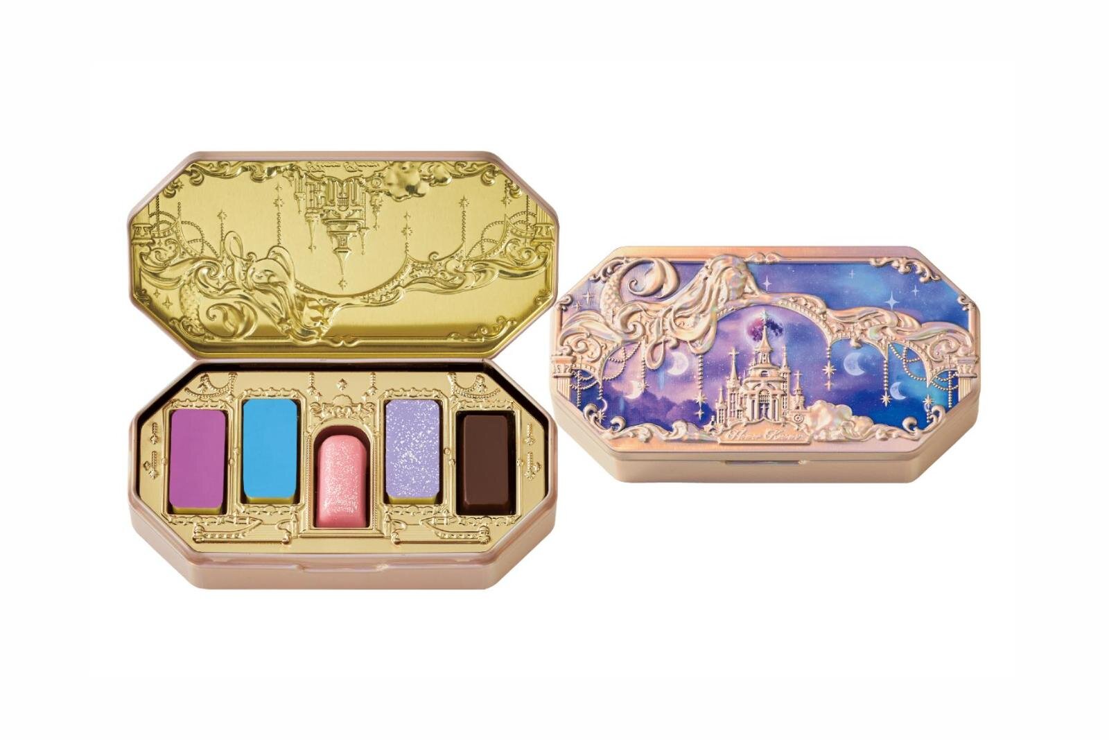 除了月光人魚系列外,這次最令人矚目的就是「天鵝芭蕾系列」的眼影盤造型巧克力禮盒。這款巧克力組合以 Flower Knows 的眼影盤為設計靈感,將美妝產品與巧克力完美結合,創造出極具創意的商品。打開仿眼影盤的鐵盒包裝,裡面整齊排列著 6 顆精緻巧克力,包括裝飾著芭蕾舞者服裝圖案的香草甘納許巧克力、栗子甘納許巧克力,以及經典的牛奶巧克力和白巧克力等多種口味。