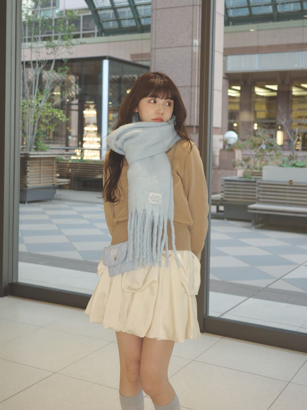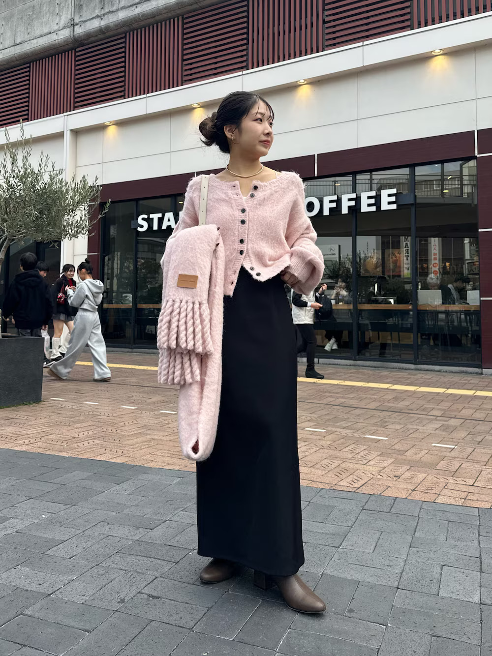 圍巾除了能保暖之外,其實也可當作配件使用,像是拿在手上或是隨性披掛都很合適,簡單不繁複的穿衣巧思,為冬季點亮與眾不同的層次焦點,衣服穿上開襟衫、長裙、長版針織,立即連結知性與優雅的日系迷人印象。