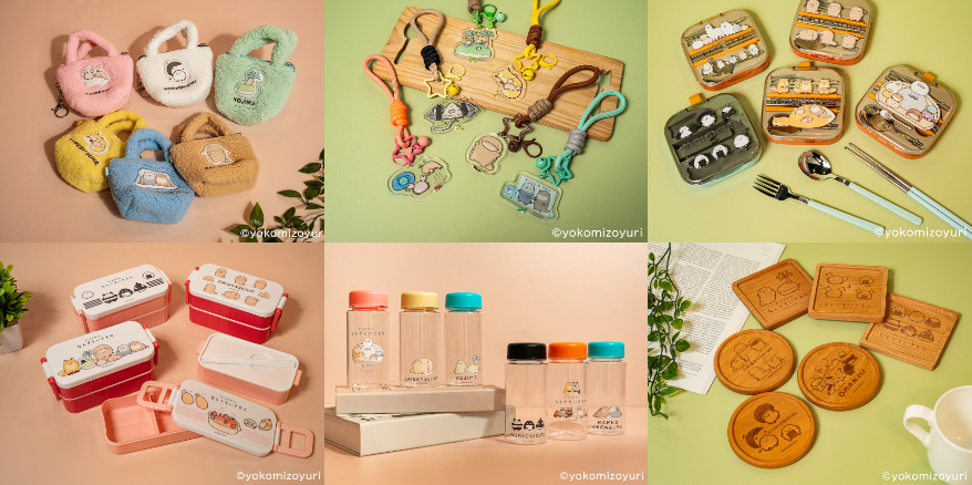 想讓煩人的工作時間也變甜?拿出六款顏色粉嫩的收納隨身小物「船型零錢包」,幫你把錢錢收好好,或是讓充滿好奇心的小島、海苔飯糰及大山椒魚等六款「壓克力鑰匙圈」掛在包包,陪妳度過擁擠的通勤路。而辦公桌前的用餐時光就讓一字排開的羊駝們帶著五款「環保餐具」陪你享受午餐,再搭配四款實用「雙層保鮮盒」,瞬間把平凡便當變身為與朗萌綺盟在都市叢林裡的野餐派對。