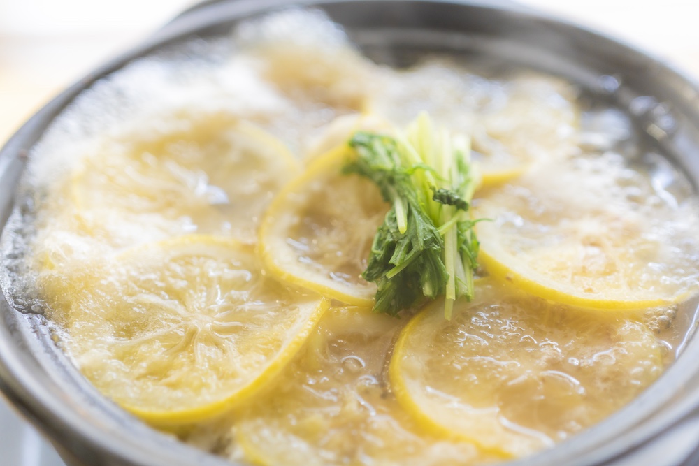 生口島有兩家老字號餐廳提供充滿檸檬清香及豐富維他命C的清爽「檸檬鍋」。(圖文提供:HIT廣島縣觀光聯盟)