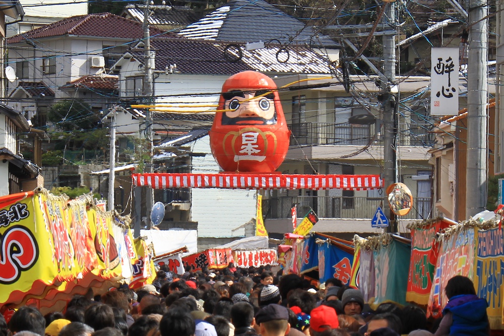 能祈求闔家平安及開運的達摩不倒翁是三原市的傳統工藝品。而在神明市集也可以看到日本第一大的「大達摩」。(圖文提供:HIT廣島縣觀光聯盟)