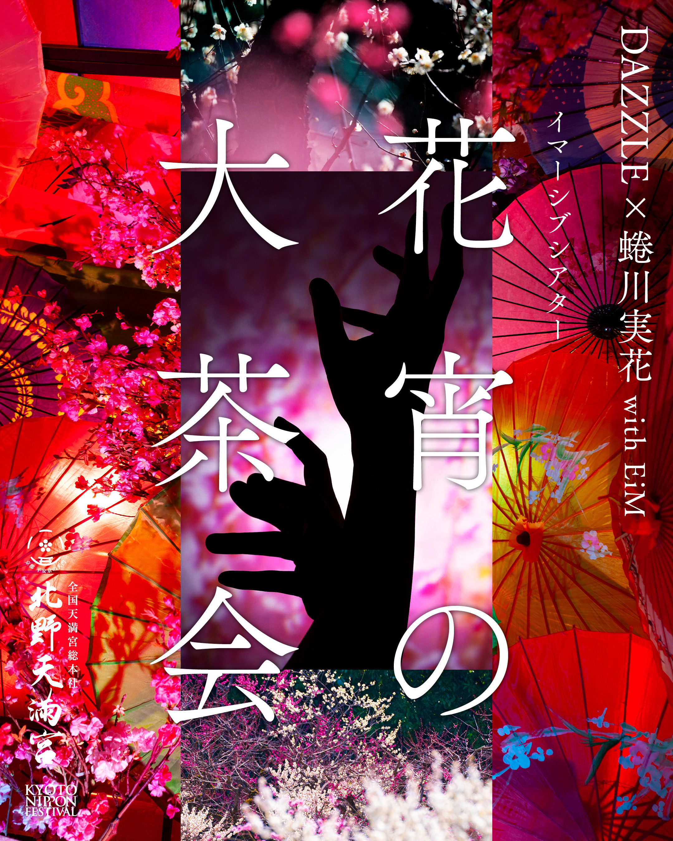 與舞蹈團體DAZZLE合作的沉浸式表演《花宵的大茶會》在日本可說是首度於數千年歷史建築中實現的創舉。以北野天滿宮的風月殿作為表演舞台,突破傳統舞台界限,將整個歷史空間化為故事場景。觀眾不再只是旁觀者,而是化身為茶會的特別賓客,親身體驗四百年前豐臣秀吉傳說茶會的「幻之第二日」。