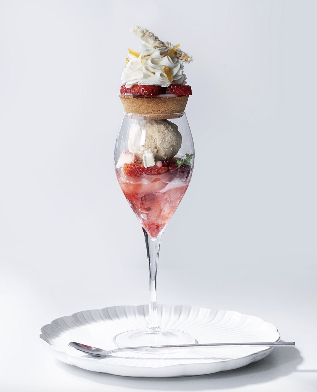 而上一檔所推出的季節限定口味則是「莓果聖代」(赤い果実のパフェ),在聖代的最上面放上了一塊柚子草莓香緹鮮奶油塔,下方則有一球義式冰淇淋、醃漬草莓與荔枝等配料,吃起來的酸甜滋味讓人欲罷不能。