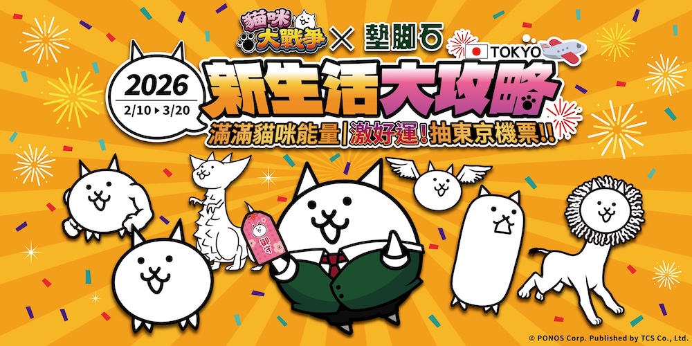 大人氣手機遊戲《貓咪大戰爭》宣布驚喜現身「墊腳石」書店,於2月10日起至3月20日,在全台12家墊腳石門市展開合作活動。從送給即將迎接新生活各位的「貓咪語錄」書店佈置,到限定款贈品「坦克貓書籤」與話題滿滿的「貓咪御守」,讓讀者在準備新學期、走進書店的同時,也能被貓咪角色默默打氣;活動期間內消費滿額並完成指定步驟,還有機會抽中「台北-東京雙人來回機票」,為開學季增添一份驚喜與期待。