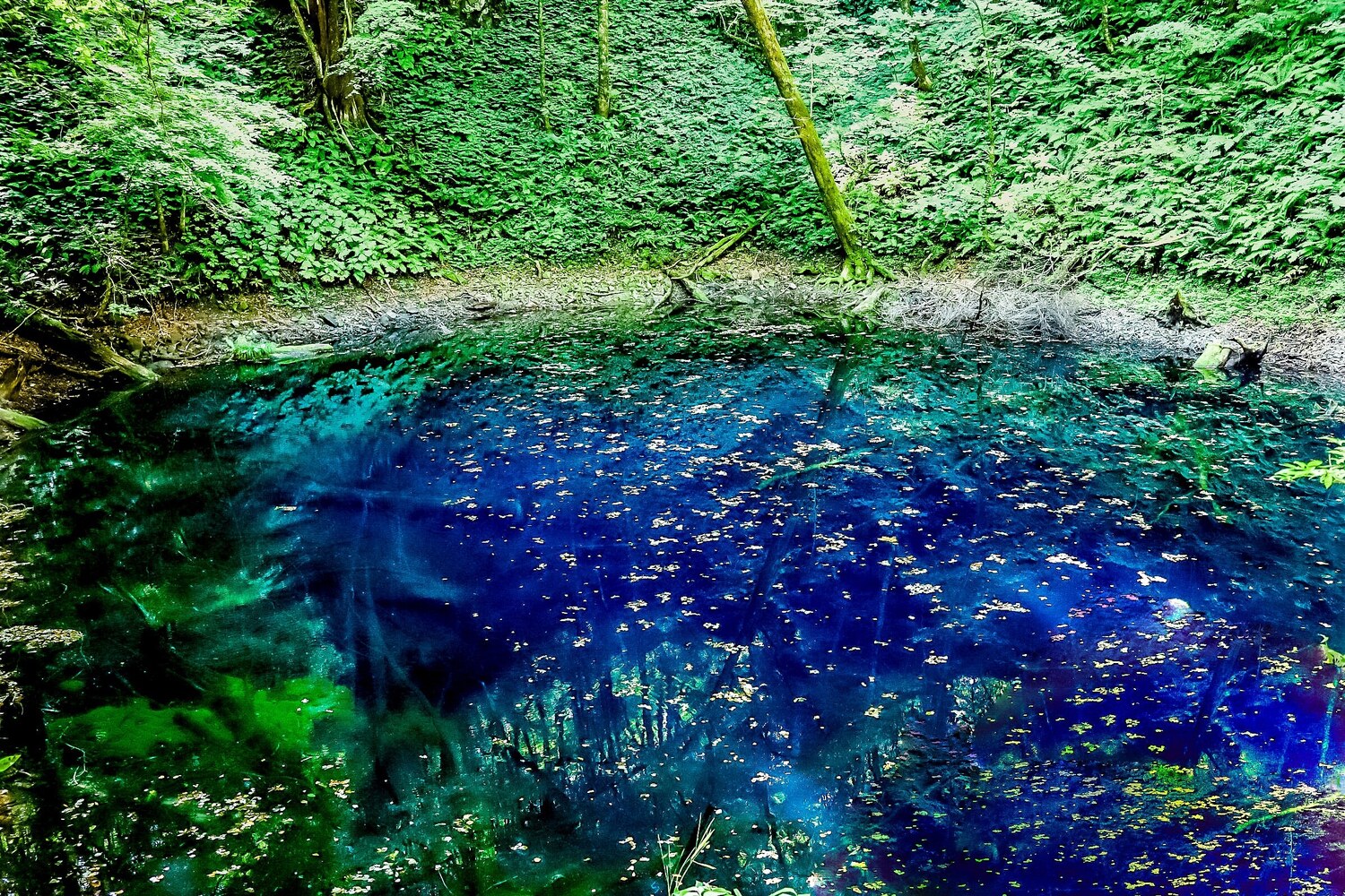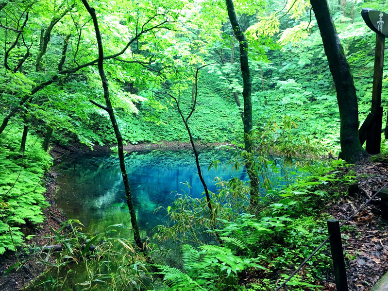 在青森縣白神山地西邊,有著33個被山毛櫸環繞的池塘與湖泊,它們被通稱為「十二湖」,因為其秀麗的景色而被列為聯合國世界遺產,其中最引人注目的,便是名為「青池」的湖泊。